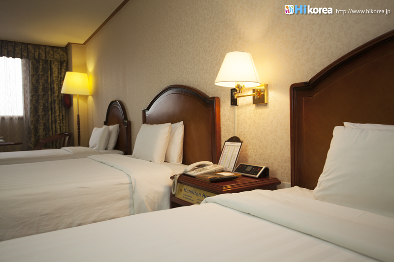 | 地下鉄6号線の梨泰院駅からすぐのところに位置する『ハミルトンホテル』は1973年に創業した伝統あるホテルです。『ハミルトンホテル』がある「梨泰院」の町は米軍基地近くに位置しているため、ソウルの中でも外人が多く見られる国際色豊かな町でオーダーメイド商品や革製品で有名なところです。ホテルと連結している「ハミルトンショッピング」には革製品、ジュエリー、カバン、CDショップなどお買い物にも便利で、また「ドリームバス」や「エバー皮膚科」などの美容に、「ブーム」、「オール ザット ジャズ 」などの夜遊びにも徒歩圏内で行けます。インテリアはゆっくりくつろげるブラウン調にまとめられ、部屋の広さも長点の一つ!5月から9月までは屋外プールも開場しますので、ソウルにいながら海外のホテルに泊まっているような雰囲気が味わえます。ソウルも楽しんで海外にいるような雰囲気も楽しめる『ハミルトンホテル』はいかがでしょうか。 |