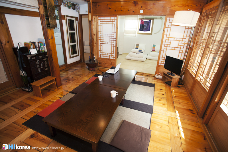 | 本日ご紹介するところは韓国伝統家屋を体験できる『HueAhnゲストハウス(ヒュアンゲストハウス)』です。韓国伝統家屋が立ち並ぶ北村韓屋村に位置する『HueAhnゲストハウス(ヒュアンゲストハウス)』は韓国伝統式暖房の「オンドル」を体験できるゲストハウスで、伝統家屋の一番大事とされる家の梁が百頭山(朝鮮半島で一番高い山)の木を使用しているそうです。韓紙が塗られた障子からもれる暖かい日差しを見るだけでも癒しの時間を過ごせるところです。ご姉弟で切り盛りしているこちら『HueAhnゲストハウス(ヒュアンゲストハウス)』は近くに冬のソナタのロケ地の「中央高等学校」や三清洞に歩いていけるところにあり、北村で有名店の黄生家(旧北村)カルグッス、韓服体験の出来るユンヘヨン韓服など見所、美食所、満載のエリアにあります。また、お客様とのふれあいを心から喜ぶご主人の優しい人柄もおススメのポイントです。寝具類や石鹸、シャンプなど備え付けのものにまで細かく気配りをしているこちら『HueAhnゲストハウス(ヒュアンゲストハウス)』に是非泊まって見てはいかがでしょうか。 |