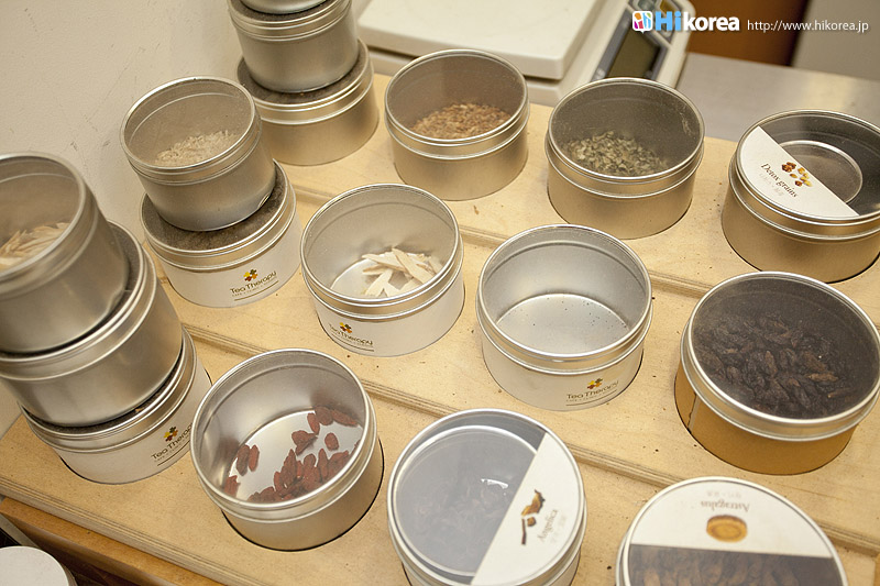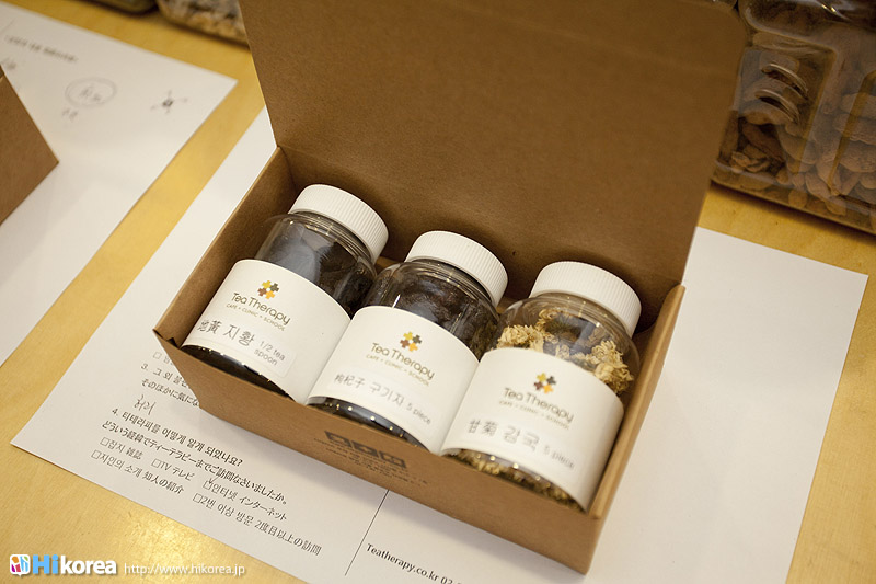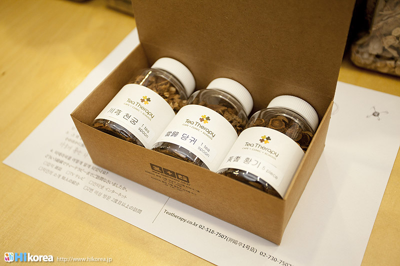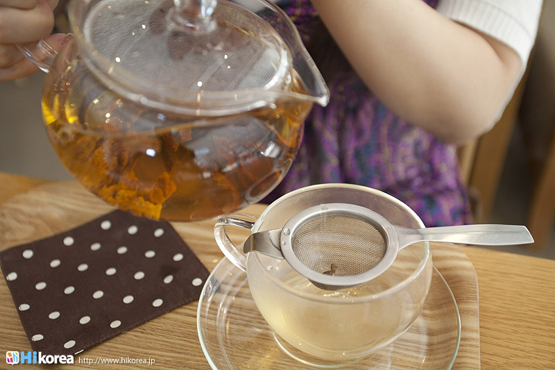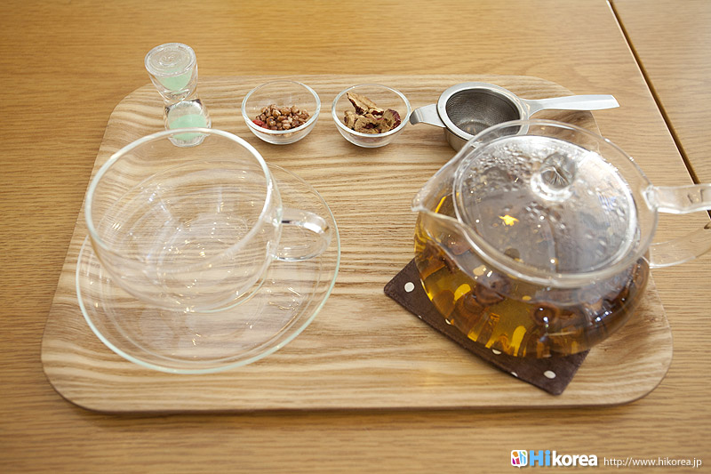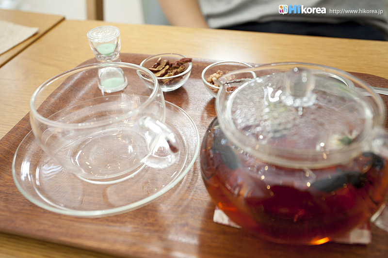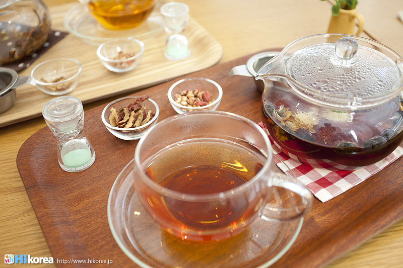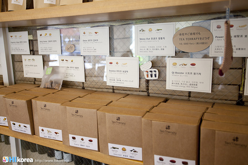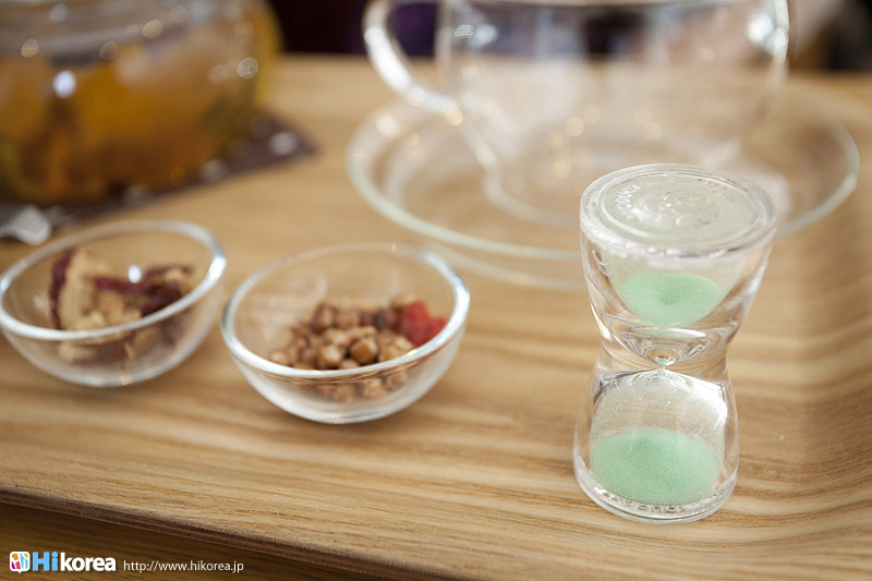 ハイコリアも実際に体験!ナマネ チャ!問診表をカキカキ。日本語でOK。 先生と直接お話。 先生が必要な韓方薬をチョイス。 ティポットは透明で可愛い。 お湯を注いで完成。 中はこんな感じ。 砂が全部落ちたら・・・ カップに注いで召し上がり。 サービスで付いて来るお茶菓子。 あなたはどのタイプ?簡単診断お茶選び!上の写真にあるイェスノー診断であなたは一体どんなタイプで、どんなお茶が合うか探っていきます。勿論日本語表記のものは常備されているのでご安心を!この診断結果に載っている色をニューに載っている印と照らし合わせ、同じ色の印がされてあるお茶の中から、飲みたいお茶を選ぶことが出来るメニューです。それだけではなく効能だけを見て、これが飲みたい!とおもうお茶があればそちらを飲んでいただいてもOK。日本人に特に人気のお茶は美肌の効果があるお茶だそうです。これを機に自分の希望のお茶をチョイスしてみるのも一つの手ですね。 お茶だけじゃない!体の芯から癒されたいあなたにこちら!『Tea Therapy』の密かな自慢がこちら“足湯”です。ヒノキで作った足湯ブースでお茶を楽しみながら足湯を堪能できる、まるで姫(笑)のような体験が出来るスペースです。足湯専用の韓方薬剤が2種類あり、どちらかを選んで自分でお湯の中に入れます。効能はAの薬剤がストレス・肩こり・頭痛・目の疲れに良い薬剤、Bが冷え性・浮腫み・血流・ダイエットに良い薬剤です。ここに足をつけていると、自然に肩の力が抜け、フニャーとリラックスでき、体の芯から温まれます。 お土産にいかが?お友達や家族にも韓方茶あなたの体、明るくしていきましょうこちらのお店には、なんと女優の小雪さんも訪れたことがあるそうで写真が飾られていました。美をいつまでも保っていなければいけない女優さんですから、やはり体の中身にも気を使っているようです。ここではカフェの他にも“ティーテラピー体験コース”というものもあり、一時間50,000ウォンでお一人様から受講可能。ストレスの為の・女性の為の・アンチエイジングの為のと3パターンのコースが用意されていて、各6種類のお茶を試飲できるとの事です。興味のある方は、お店の方に直接お問い合わせて見てくださいね。日本語可能なスタッフの方は、日本人かと思った位日本語がお上手なので、安心してお問い合わせ頂けますよ。このお店は現代を生きる人たちが、一番求めている時間作りを可能にした癒しのカフェ。日々疲れているあなた!気分をリフレッシュしにソウルに来たあなた!是非お立ち寄り頂きたいおすすめのカフェです。 |