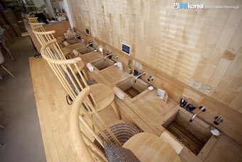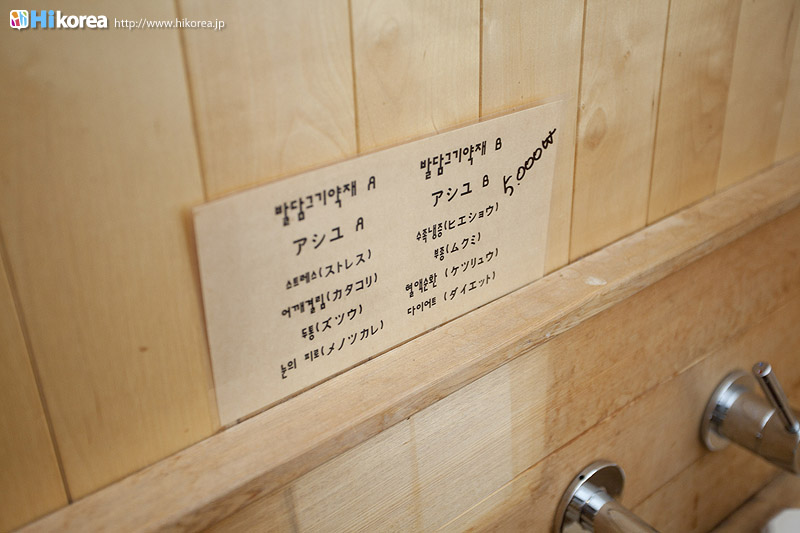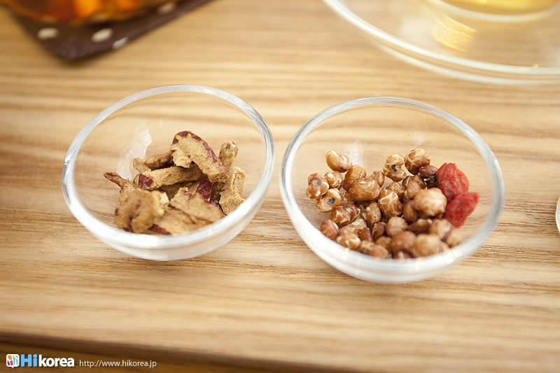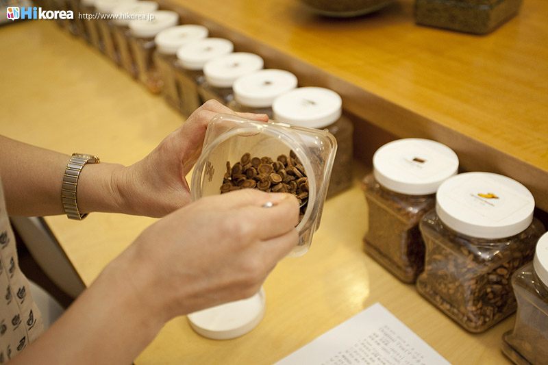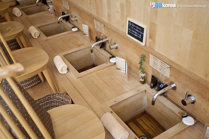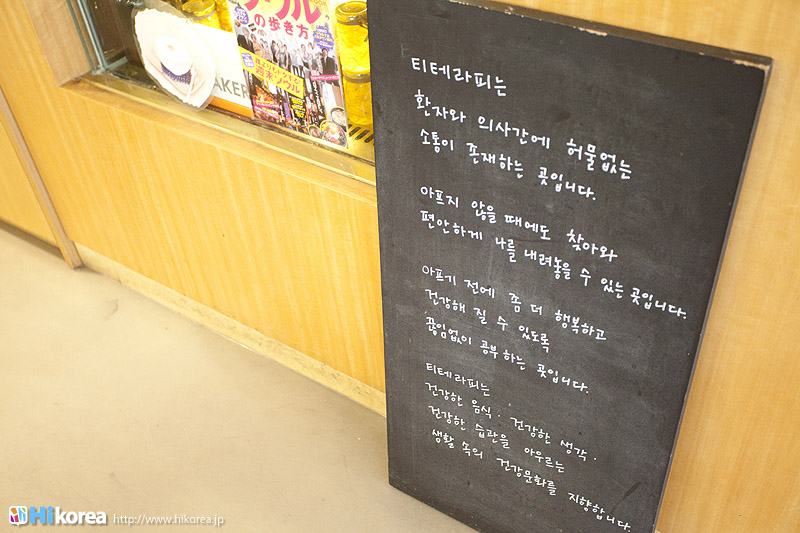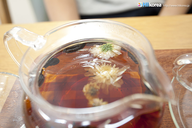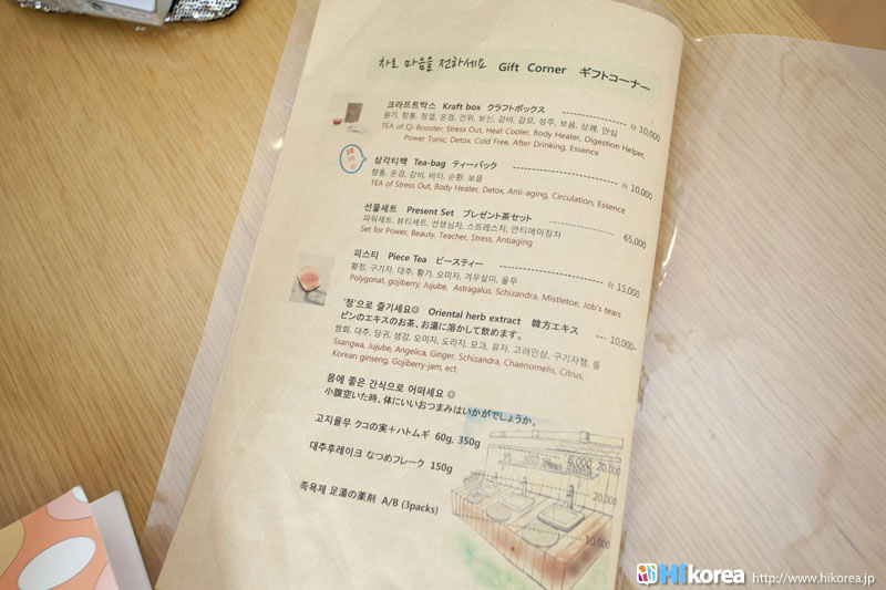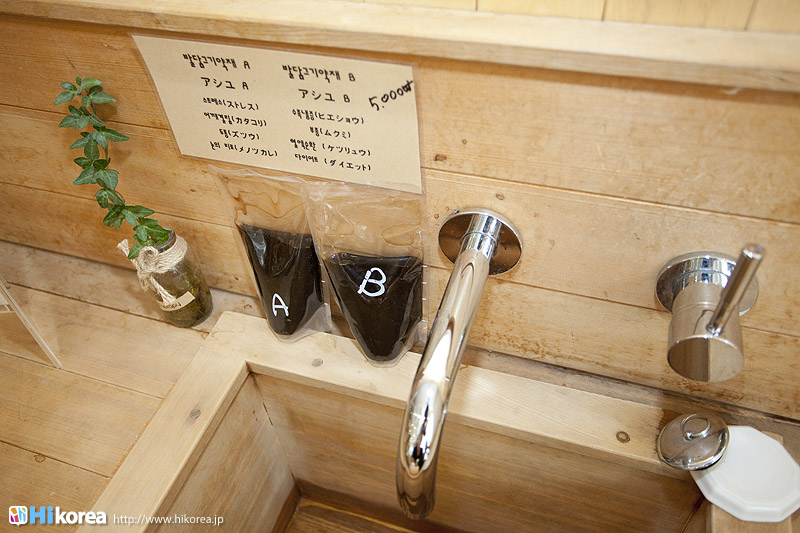 ハイコリアも実際に体験!ナマネ チャ!問診表をカキカキ。日本語でOK。 先生と直接お話。 先生が必要な韓方薬をチョイス。 ティポットは透明で可愛い。 お湯を注いで完成。 中はこんな感じ。 砂が全部落ちたら・・・ カップに注いで召し上がり。 サービスで付いて来るお茶菓子。 あなたはどのタイプ?簡単診断お茶選び!上の写真にあるイェスノー診断であなたは一体どんなタイプで、どんなお茶が合うか探っていきます。勿論日本語表記のものは常備されているのでご安心を!この診断結果に載っている色をニューに載っている印と照らし合わせ、同じ色の印がされてあるお茶の中から、飲みたいお茶を選ぶことが出来るメニューです。それだけではなく効能だけを見て、これが飲みたい!とおもうお茶があればそちらを飲んでいただいてもOK。日本人に特に人気のお茶は美肌の効果があるお茶だそうです。これを機に自分の希望のお茶をチョイスしてみるのも一つの手ですね。 お茶だけじゃない!体の芯から癒されたいあなたにこちら!『Tea Therapy』の密かな自慢がこちら“足湯”です。ヒノキで作った足湯ブースでお茶を楽しみながら足湯を堪能できる、まるで姫(笑)のような体験が出来るスペースです。足湯専用の韓方薬剤が2種類あり、どちらかを選んで自分でお湯の中に入れます。効能はAの薬剤がストレス・肩こり・頭痛・目の疲れに良い薬剤、Bが冷え性・浮腫み・血流・ダイエットに良い薬剤です。ここに足をつけていると、自然に肩の力が抜け、フニャーとリラックスでき、体の芯から温まれます。 お土産にいかが?お友達や家族にも韓方茶あなたの体、明るくしていきましょうこちらのお店には、なんと女優の小雪さんも訪れたことがあるそうで写真が飾られていました。美をいつまでも保っていなければいけない女優さんですから、やはり体の中身にも気を使っているようです。ここではカフェの他にも“ティーテラピー体験コース”というものもあり、一時間50,000ウォンでお一人様から受講可能。ストレスの為の・女性の為の・アンチエイジングの為のと3パターンのコースが用意されていて、各6種類のお茶を試飲できるとの事です。興味のある方は、お店の方に直接お問い合わせて見てくださいね。日本語可能なスタッフの方は、日本人かと思った位日本語がお上手なので、安心してお問い合わせ頂けますよ。このお店は現代を生きる人たちが、一番求めている時間作りを可能にした癒しのカフェ。日々疲れているあなた!気分をリフレッシュしにソウルに来たあなた!是非お立ち寄り頂きたいおすすめのカフェです。 |