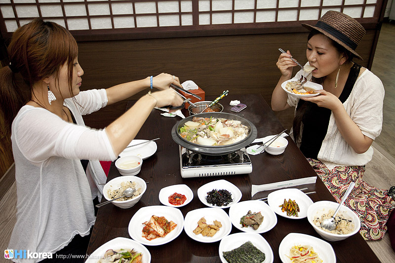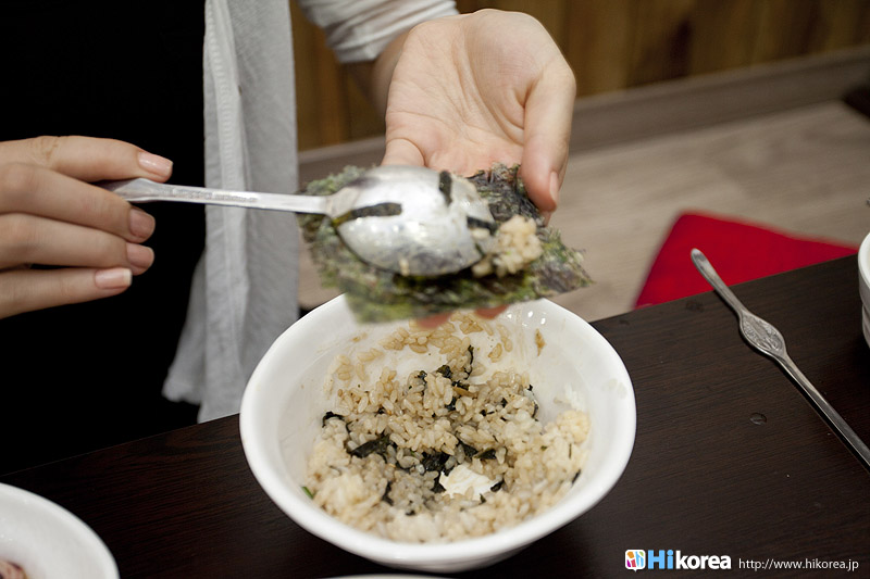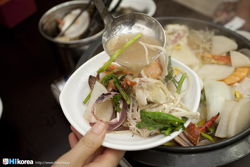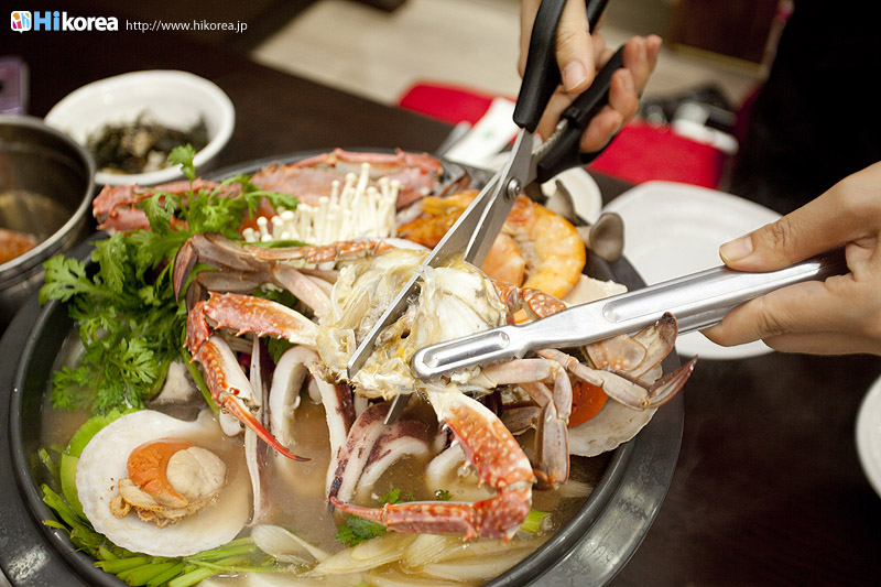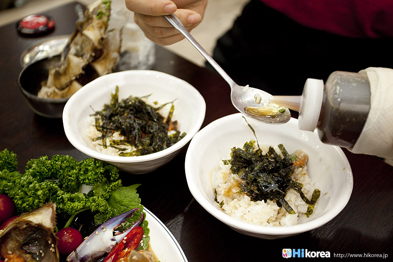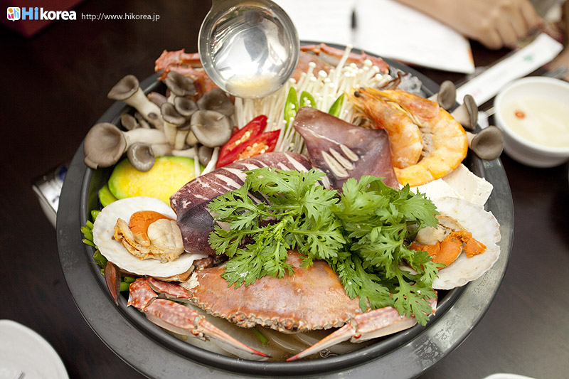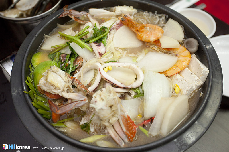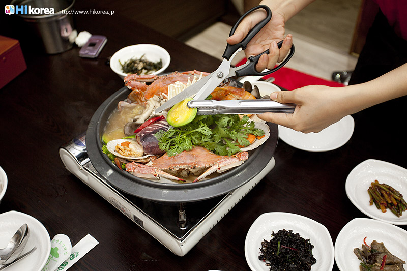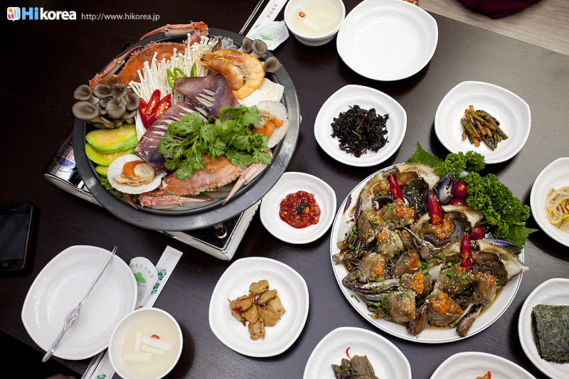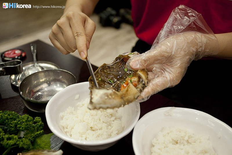 プルルンとしたカニの身と、色鮮やかなオレンジ色の卵がツヤツヤしていて、たまらない食感です。しょっぱすぎず生臭さも一切無く、奥深い風味や香りが口の中全体に広がります。食べ方は、足の部分を持って胴の部分にかぶりつき、チューチュー吸い出して食べるのが通!カニ本来の甘みや特性醤油の香ばしさがたまらない美味しさです。お酒のつまみにもピッタリなので、焼酎やビールと一緒に召し上がってみてもいいですね。 お楽しみはこれだけじゃない!これが本当の“ご飯泥棒” これがあるからカンジャンケジャンを食べる人もいる位、美味しい食べ方です。こちらのお店では店員さんが全部やってくれるので、安心&楽チンですよね! まずご飯を用意 甲羅にある味噌をかき集めます 奥からもかき出してご飯にのせて 特性醤油をスプーン2~3杯 あぶり刻み海苔をのせ ごま油をスプーン2~3杯 ジャン! まぜまぜまぜ・・・ コチュジャンと海苔でどうぞ 人気メニューのコッケタン(ワタリガニの鍋)こちらのお鍋はワタリガニの他に海の幸をふんだんに使ったお鍋です。野菜やキノコも溢れんばかりに入っています。あまり辛くないのでお子さんにも喜んでもらえる味だと思いますよ!ここに入ってるカニにも味噌がタップリ詰まっているのでこちらもお楽しみ下さい。 大きい具は店員さんが切ってくれます バリバリ・・・ グツグツ煮えたら召し上がれ お楽しみメニュー沢山(*´∀`*)“ヤンニョムケジャン” こちらは唐辛子やニンニク、しょうが、ネギ、砂糖店によっては蜂蜜などを混ぜた真っ赤なソースに漬けたワタリガニです。食べ方はカニの身をチューチュー吸ったり、ガリガリ噛んで殻だけ出したりと、お好きな様に食べていただけます。 “生タコのお刺身” 生きたままブツ切りにされたタコのお刺身です。お皿の上でウネウネと動いている新鮮なタコを、特性のタレにつけて食べます。箸から落ちないようにしっかりつかんで下さいね! “海鮮チヂミ” 韓国料理の中でも人気のチヂミ!自慢の海鮮を沢山使い、ネギの香ばしさが最高の一品。専用タレも病みつきの旨さでした。色鮮やかでキレイでしょ! “ケランチム(韓国風茶碗蒸し)” こちらの品は定食の時はついてくるそうです。単品注文の際は5000ウォンで提供しています。日本の茶碗蒸しとは全く違うので、是非食べてみて下さい! “お粥” 韓国にはたくさんの種類のお粥がありますが、こちらでもお召し上がり頂けます。朝食メニューもやってますので、朝ご飯や、食べすぎて胃が疲れちゃった日などにおすすめです。 アワビ粥 ![]() カニ肉粥 グルメに舌鼓したいあなた! |
