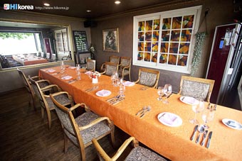 明洞から近距離!空港からも便利!ソウルで見つけた隠れ家厳選された新鮮な食材の味を化学調味料を使わずに!季節の野菜とオーストラリア産ヒレステーキ シェフは12年間洋食一筋のベテラン。その日に入荷した新鮮なものだけを化学調味料を使わずに、食材の味を生かした調理法で心のこもった料理でおもてなししてくれます。体にも嬉しいですね!「世の中にない味」本当に美味しい味だと幸せな気分になってもらいたいという社長の思いが込められた絶品料理の数々。季節ごとに付け合せが変わるのも、出来るだけ美味しいものを食べてもらいたいというシェフのこだわりから。 ディル、トマト、バジルドレッシングを 添えたスモークサーモン 数の子とフェンネルソースのやわらかい 貝柱 りんごチャツネを添えたフォアグラ 一品料理も本格的!一品料理の中でもおすすめなのがパスタ料理。なかなか好みのパスタを見つけるのが難しい中、こちらは日本人に一番人気なのだとか。濃厚なカルボナーラソースにベーコンの香ばしい香りが効いているパスタ。濃厚なのにペロリと食べれてしまう一品。マッシュルームとベーコンがごろごろ入っていて食べ応えがあるスパゲッティです。カルボナーラソースをパスタにたっぷりと絡めて頂きましょう!定番クリームスパゲティのカルボナーラに引けを取らない美味しさの海老とトビッコのクリームパスタは特におすすめ!魚介のうまみが効いたクリームソースがやみつきに。リゾットはアワビのリゾットがおすすめ。アワビが丸ごと入っていて、食感をしっかり楽しめる贅沢な一品です。ランチタイムにはお得なセットも!! サラダ・パスタ・ドリンクのAセットと、おすすめのステーキがコースに入った、サラダ・ステーキ・アイスクリーム・ドリンクのBセットとの2種類が用意されています。 カルボナーラスパゲティ 海老とトビッコのクリームパスタ アワビのリゾット デザートはレストラン自家製!![]() 忘れてはいけないのが、お食事のあとのデザート、ティータイムにぴったりな美味しいデザート。こちらもレストランでの自家製なんです!甘いものが苦手な方もお楽しみ頂けるガトーショコラはリッチなチョコレートの味がなぜかさっぱりと感じられる不思議な感覚。濃厚な味がやみつきになるチョコレートチーズケーキも絶品です。デザートだけでも食べに来る価値ありです!ブラウニーやチーズケーキは赤ワインにもよく合います。 マドレーヌ チーズケーキ 温かいブラウニーバニラアイスクリーム 添え 部屋に合ったネーミング?日が昇る部屋 (해 뜨는 방:へトゥルヌンバン) 「I.O.U」では一つ一つの部屋にその部屋に合った名前が付いているんです。入口を入ると広がる1階席は"私はあなたと"。名前の通り、2~4名席が並んでおり、少人数で楽しく食事が出来る席が広がっています。また、2階の個室(※現在は入れません)には、、"絵のような部屋"、"ささやきの部屋"、1階の個室には"日が昇る部屋"があります。地下には大人数での食事が楽しめる"みんなと"、少人数用の個室の"月明かりがきれいな部屋"、"奥ゆかしい部屋"があります。部屋ごとに窓から見える景色が違い、それぞれ楽しめるのも魅力の一つです。 ささやきの部屋 (속삭이는 방:ソクサギヌンバン) 月明かりがきれいな部屋 (달빛 고운 방:タルピッコウンバン) みんなと (모두랑:モドゥラン) 気軽にフレンチを![]() フレンチと聞くと少しかしこまってしまいがちですが、気軽に食べに来て欲しいという暖かい雰囲気のスタッフ達が最高のおもてなしをしてくれます。ソウルでの忙しい時間を忘れて、漢江の夜景を目の前に静かな空間の中でゆったりと楽しむフレンチイタリアン。みなさんも、忙しいソウルでの時間を忘れて、「I.O.U」でゆったりと素敵な時間を過して幸せな気分に浸ってみませんか? コース料理![]() ![]() ル・シエル 68000ウォン(10%税別)"ル・シエル"とはフランス語で"空"という意味。 季節の野菜と新鮮なお肉と魚介類が楽しめるコースです。ゆったりとした雰囲気で、ゆっくり余裕のある時間を楽しんで頂くためにもやはりコースは一押し!中でもコースのメインのステーキはシンプルな味付けでお肉の味を楽しめちゃいます。コースのデザートはお好きなものをチョイス出来るのも嬉しいです。また、コース料理には欠かせないワイン。レッド、ホワイト、ロゼ、シャンパン・・・と種類も豊富。リーズナブルなハウスワインも美味。もちろん好みに合わせたワインのおすすめもしてくれます!あなたのお好みがきっと見つかるはず☆それでは、「I.O.U」一押しの自慢のコース料理を早速ご紹介したいと思います! ※食材は変わることがあります いただきま~す! トマト、アイオリソースを添えた海老料理 シャフランソースを添えたアワビ料理 本日の特選スープ この日はブロッコリースープでした 季節の野菜とオーストラリア産サーロイン ステーキ デザート |