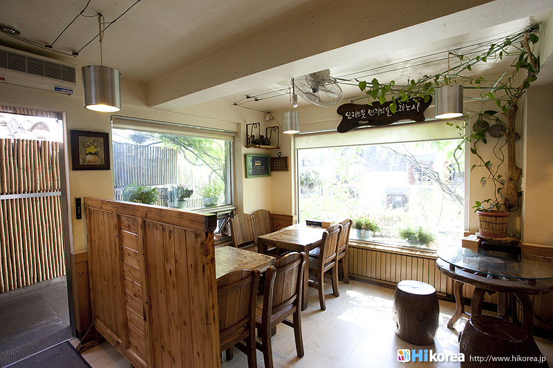 韓国伝統家屋を利用してお洒落なカフェやレストラン・ギャラリーなどが立ち並ぶ“三清洞通り”の一番奥にある『雪木軒』は、“キムチマリククス”と“トッカルビ”が有名なお店です。“キムチマリククス”は、いかなごの塩辛をほんの少し加えて熟成させた水キムチのスープに素麺のような麺を入れたあっさりとした冷たいスープ麺で、食欲のないときでもツルツルッと食べられます。“トッカルビ”は牛カルビを用いた一見ハンバーグのような焼肉料理で、韓国グルメの聖地・全州道の郷土料理としても有名です。お店はビルの2~4階の3フロアになっていて、店内の階の壁には雑誌紹介記事や芸能人のサインがぎっしり飾られています。