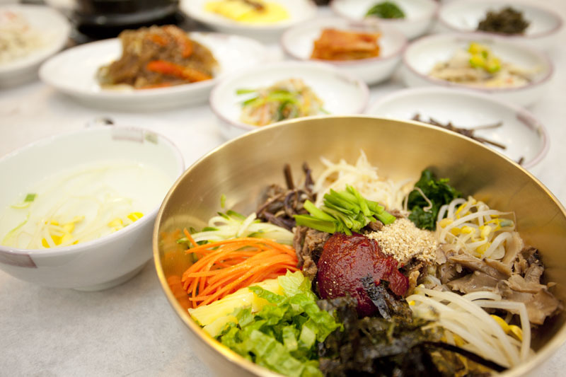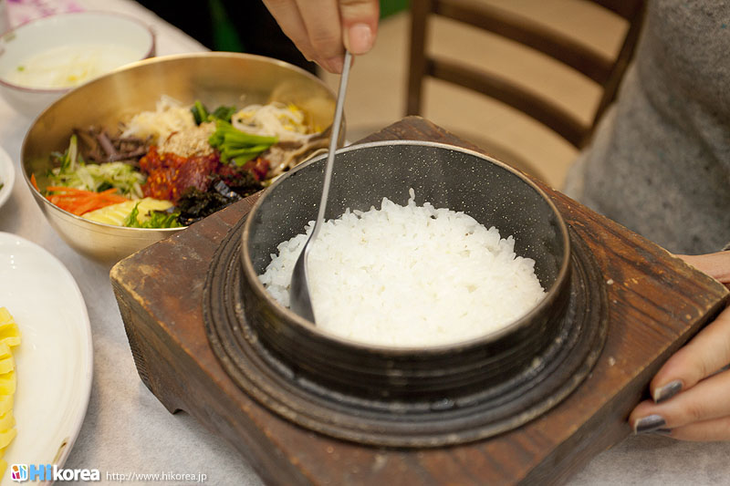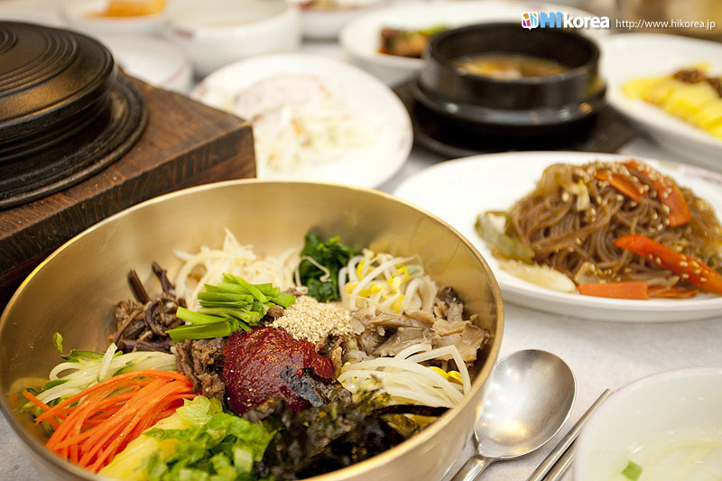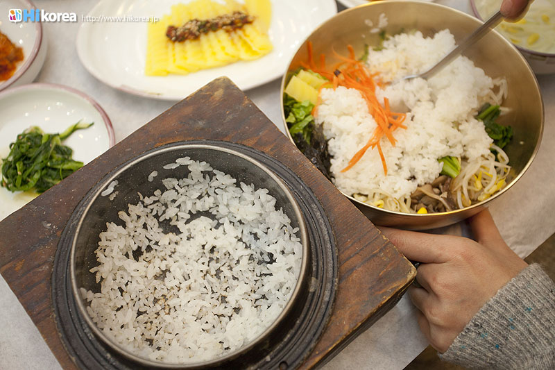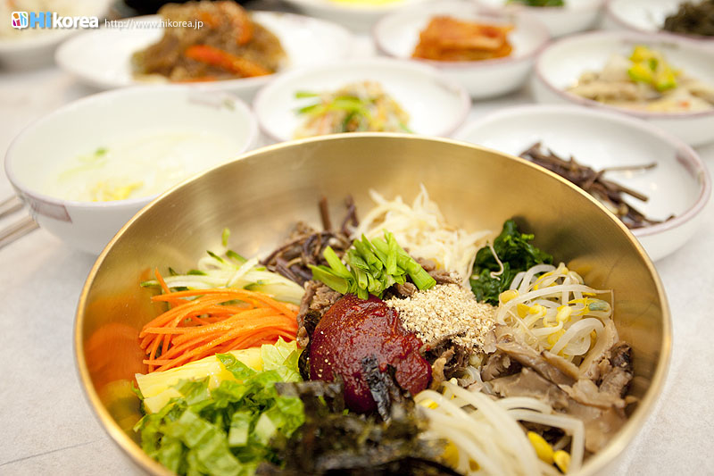 “味の都・全州”美味しい食べ物が沢山ある全州の名物の中でも、ピビンバッは世界に誇る食べ物です。特に全州ピビンパッは平壌の冷麺、開城の湯飯(クッパッ)とともに朝鮮王朝時代の三大名菜とされ、現在は韓国の無形文化財となっています。また、ピビンバッに入るすべての材料は陰陽五行說に基づいて五色五味の調和をなしています。五色は緑・赤・黄・白・黒、五味は甘い・塩辛い・香ばしい・辛い・渋いで、それらを持ち合わせた食材を使うのが全州ピビンバッです。創業60年を誇る『中央会館』のピビンバッは、一人用の釜で炊かれた釜飯と30種類以上の食材が盛られた真鍮の器と一緒に出してくれます。そのうえ釜に残ったおこげでおこげスープまで楽しめます。では早速『中央会館』のピビンバッをご紹介しましょう。食の宝庫・全州市完山区に位置全州市民に大人気の中央会館30種類の具材と鉄釜で炊かれたご飯のハーモニー全体写真 海産スントゥブチゲ チャプチェ 緑豆の寒天 ナズナの和え物 カクトゥギ エゴマのポタージュ 細ネギの和え物 わらびのナムル 山菜ナムル もやしのナムル シメジとホバクの炒め物 唐辛子のから揚げ サラダ 鯖の南蛮漬け 白菜キムチ エゴマの醤油漬け きゅうりと玉ネギのキムチ 元祖“釜飯ピビンバッ”の味を是非一度! |