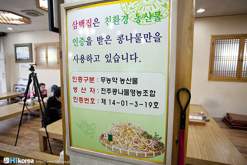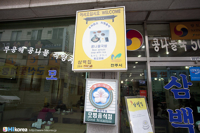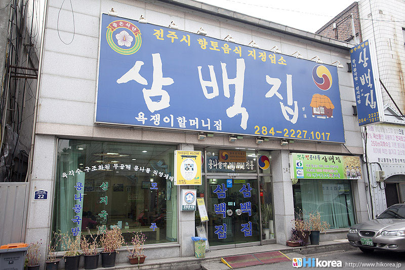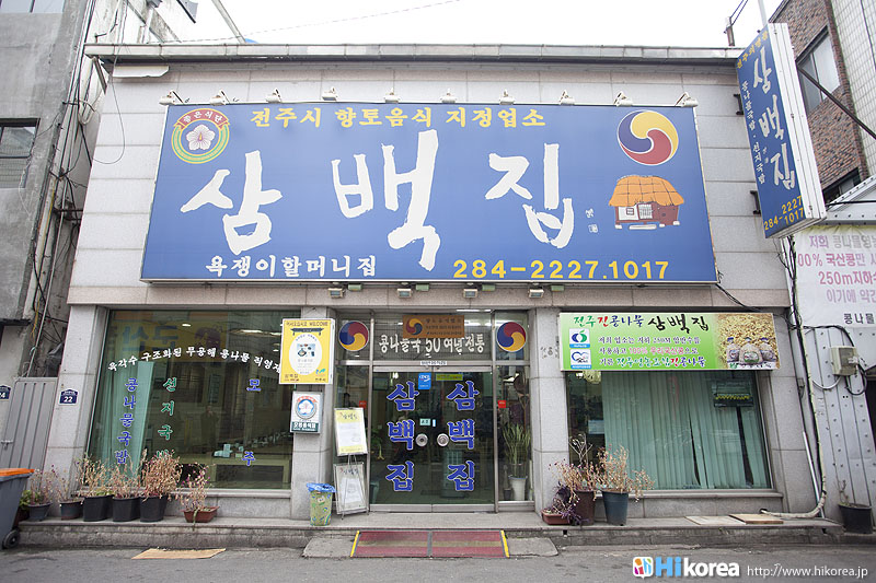 全羅北道全州は韓国内で一番食べ物がおいしい所として知られていますが、特に“ビピンバッ”・“韓定食”・“コンナムルクッパ”・“マッコリ”などが有名です。その中で『三百屋』はおいしい“コンナムル(豆もやし)クッパ”を食べさせてくれるお店、そして全州で一番古いコンナムルクッパ屋さんとして知られています。全州には大きく分けて二種類の“コンナムルクッパ”があります。ひとつは“南部市場式コンナムルクッパ”で、これは沸騰させずにご飯を熱いスープに入れて混ぜて食べる方法で、もうひとつは『三百屋』が元祖となっている“三百屋式コンナムルクッパ”です。こちらは土焼きの器にスープとご飯を入れたところに豆もやしと卵を添えて、アツアツに沸騰させて提供してくれるのが“三百屋式コンナムルクッパ”です。今回は全州で一番古くから営んでいる『三百屋』をご紹介しましょう。全羅北道全州市の中央に位置『三百屋(サンべッチッ)』は、ソウルから約200km南に行った全羅北道(チョンラプッド)全州市(チョンジュシ)の中央に位置しています。全州観光ホテルとは目と鼻の先にあり、また全州で有名な“全州韓屋(チョンジュハノッ)マウル”、朝鮮王朝の創始者・太祖(テチョ)の肖像が飾られている“慶基殿(キョンギジョン)”、アジア三大聖堂の“殿洞聖堂(チョンドンソンダン)”、韓国ドラマ“成均館スキャンダル”の撮影現場となった“全州郷校(チョンジュヒャンキョ)”なども近くに位置しています。ソウルから『三百屋』へは、高速バスターミナルから全州行きの市外バスに乗り3時間、全州に到着すれば長い距離ではないので、後はタクシーで移動するのをお勧めします。 少人数から団体まで対応『三百屋』の入口に入ると左に座敷席、右側がテーブル席、また奥には90名ほど入られる座敷があるので、団体旅行にも十分対応が可能です。また、ここ『三百屋』は24時間営業となっていますので、深夜にはお酒を飲んだあとのシメのお客さんが来たり、朝にはへジャン(二日酔いを治すこと)をするために訪れるお客さんなど様々です。もちろん昼食や夕食で訪れる人も多く24時間人の出入りのあるお店です。 地下250mの水で育てられた豆もやしを使用『三百屋』のコンナムル(豆もやし)は、地下250mのきれいな地下水で育て、無農薬農産物としても認証を受けている国産100%のものだけを使用しています。また全州の豆もやしは全国の中でも最高とされていますが、それは気候と水質が豆もやしの栽培するのに適していたためと言われています。 『三百屋』の名前の由来『三百屋』は、1946年頃に“イ・ボンスン”と言うおばあさんが、看板もない名前もない5坪余りのへジャングッのお店を現在の位置で始めました。その後、看板もない名前もない安物のヘジャングッのお店は、、多くのお客さんが集まる全州の名所となりました。しかし“イ・ボンスン”おばあさんは、どんなに多くのお客さんが訪ねてきても三百食以上は売らなかったそうです。三百食が売れれば午前といっても店を閉めたので、いつからかお客さんたちが『三百屋』と呼ぶようになったのです。三百食というのは、おばあさんが一日のうち精魂こめて作ることが出来た量だったのです。そんな『三百屋』のコンナムルクッパッは、土焼きの器に大根、昆布、煮干、エボヤで取ったスープとご飯を入れたところに豆もやしと卵を添えて、その上に2~3ヶ月経ったキムチを小さく刻んだものをのせ、アツアツに沸騰させたものをいただきます。味が薄ければアミエビの塩辛で調節すれば、また一味違った味が楽しめるでしょう。 『三百屋』の母酒昔、酒豪の息子の体を心配した母親が体に良い韓方薬材をマッコリに入れて沸かして作ったのが母酒の始まりです。母酒には生姜、ナツメ、甘草、高麗人参、葛、シナモンが入っていて、その上『三百屋』の母酒はアルコール成分がほとんど無いために、現在はお酒として認識されるよりも食後や食前に飲む健康飲料として、とても人気があります。『三百屋』の母酒は現在、シッケや水正果(スジョンクァ)のように韓国伝統飲料中のひとつになっています。 是非本場のコンナムルクッパッを・・・『三百屋』のご主人 『三百屋』いかがでしたか?全州に行ったらピビンバッも外せないけど、コンナムルクッパッもやはり外せない一品ですよね*^^*全州に行ったら是非本場のコンナムルクッパッを召し上がってみてくださいね。また、隣には同系列の『ナッチャカンスリッパ(ぺちゃんこのスリッパ)』というかわいいカフェがあり、パソコンも置いてあるので、食後のコーヒーを飲みながら次に行くところを、調べてみるのもいいですね。 |
