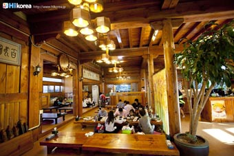 京畿道利川市は全国的に有名な陶磁器の産地であり、また韓国の米どころとしても有名で、また利川温泉などもあります。道の両脇にある陶器屋さんでは、ずら~っとお店の前に食器やかめを並べて売っている景色は、日本で言えばさながら備前や信楽といったところでしょう。そんな利川では、韓国の米どころというだけあって、おいしいお米を石釜で炊いたご飯が食べられる、サルバブチッと言うご飯やさんががたくさんあります。サルバブチッとは、地元利川で採れるお米を使ったおいしいご飯と、たくさんのおかずを食べさせてくれるお店の事をいいます。その中でも韓国人に一番人気のお店を今回はご紹介しましょう。広~い店内でゆったりとお食事を・・・ここ『正一品』は、ソウルから車で2時間余りのところの利川にあります。利川は遠い昔から陶磁器の原料と燃料が簡単に手に入るという立地条件のために韓国の伝統陶芸の中心地になっていました。そして、また、もうひとつはずせないのが、利川のお米。韓国最高のお米と言われるほど美味しいことで有名で、昔は王様の膳に並んだとも言われています。ここ『正一品』は利川陶芸村、海剛陶磁美術館、雪峯公園などが近くにあるので、利川観光の合間に、さっと行けるのでお腹がすいたら一度立ち寄ってみてはいかがでしょうか。