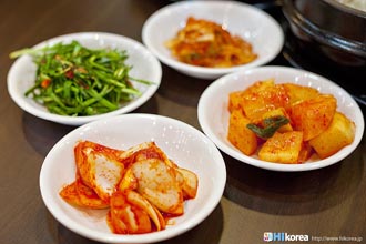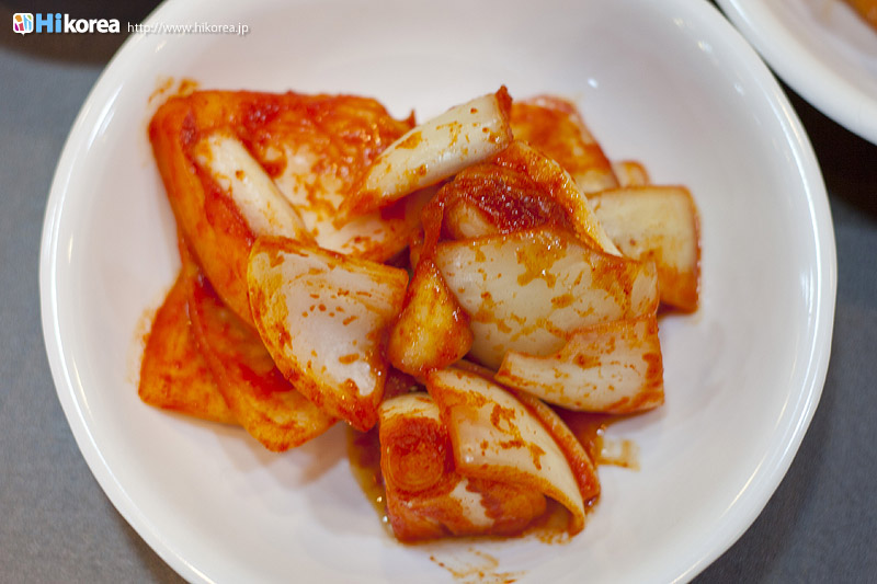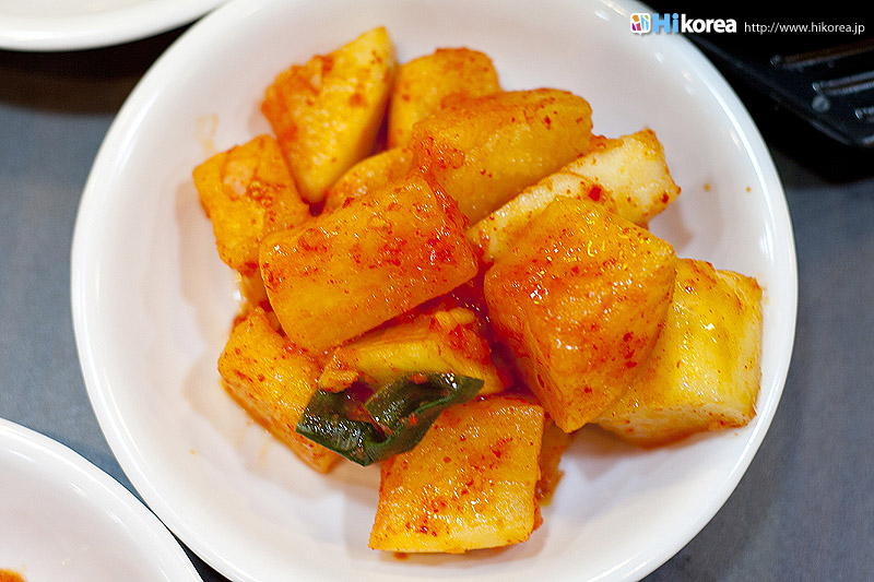 サービスのキムチも美味しく食べる一つの方法。 参鶏湯自体は全く辛くないので、辛いのが苦手な方にも自信を持ってオススメ出来るのですが、やっぱり韓国に来たから辛いものも食べたいという方もいるのではないでしょうか?そんな方にもご安心して頂ける食べ方をご紹介。 一緒に カクテキやキムチが出てくるのですが、それと一緒に 参鶏湯を食べるのです。これ、結構オススメなんですよ。キムチ自体はすっごい辛い訳ではないのですが、 コクのあるスープがしみ込んだご飯やお肉とキムチの絶妙なバランスがたまりません。勿論塩やコショウで自分好みに味付けして頂くのも十分美味しいのですが、韓国人はキムチと一緒に食べる事が多い様。キムチは お代わり自由なのでどんどん食べちゃって大丈夫です。キムチだけでも十分美味しいですよ。