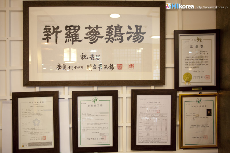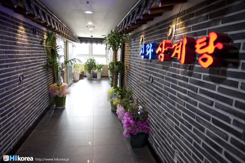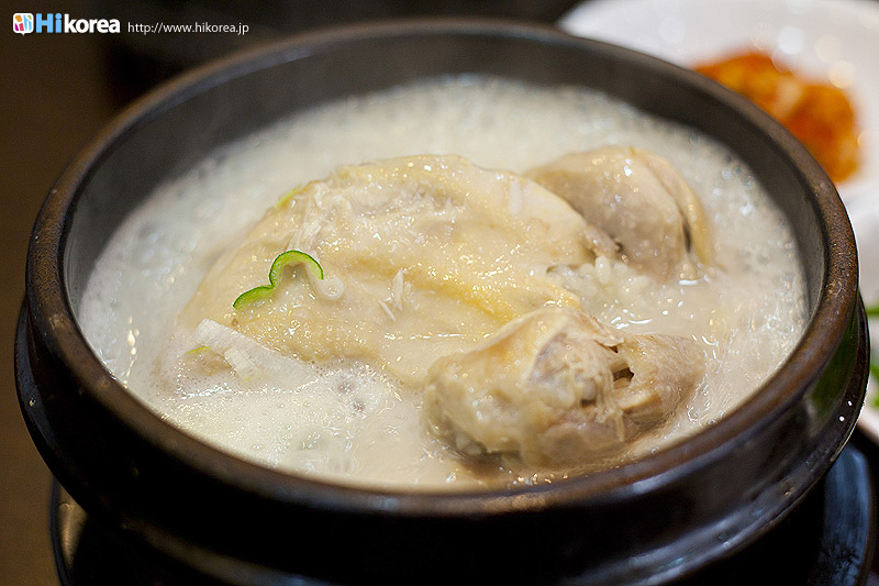 栄養ドリンクならぬ栄養ご飯!?食べてるうちにどんどん体の芯から温まる。 参鶏湯は鶏肉に 高麗人参やもち米などを入れて煮込んだ栄養食で、夏の料理として知られています。日本の土用の丑の日における鰻の様に、三伏の日に食べると健康に良いとされている伝統料理です。鶏肉の中に入っているのは もち米や高麗人参だけでなく、 栗、松の実、ニンニク、干しナツメなど、薬膳料理の材料として良く知られたものがギュウギュウに詰められています。味付けはほとんど行われておらず、塩、コショウ、キムチなどで自分好みに味を調えて食べるんですよ。小皿にお塩を入れて少量のスープで溶き、そこに肉片をひたして食べてもOK。 食べた後みるみる力が湧いて来る様な嬉しい料理です。 他の参鶏湯とは比べられないコク。 ここ新羅参鶏湯は飲食業経営30年のご主人がコダワリを持って丹念に作り出し、他の参鶏湯とは比べられない程の コクと旨味を出しています。 中に入る 人参、ナツメ、もち米、銀杏などは産地から直接仕入れており、材料からコダワリを見せています。 私は個人的に参鶏湯はさっぱりしたスープのイメージだったんですが、ここのを食べてイメージが変わりました。まあなんとも まろやかで風味とコクがしっかり鶏肉に絡み合いご飯にしみ込んでいて、やみつきになる味なのです。 鶏肉から出た肉汁と コラーゲンのトロミが女性には嬉しいですね。 簡単に骨と肉がはずれ、軟骨や小骨まで食べられる程トロットロに煮込まれていますよ。高麗人参の風味がみるみる健康に導いてくれてる様な感覚に陥ります。