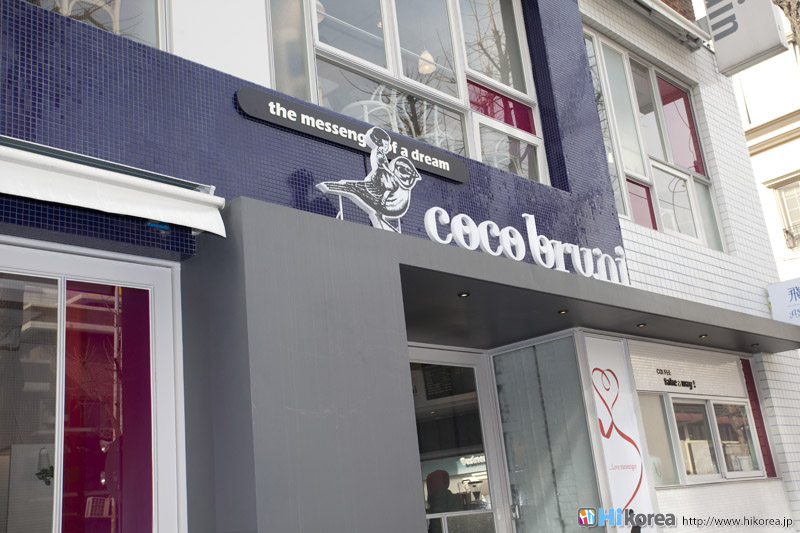 お洒落な街、カロスキルのちょうど真ん中にあるショコラ専門店COCOBRUNI。白を基 調に清潔感溢れ、シンプルなインテリアで落ち着きのある店内。最初に目に移るのは 大きいガラスのショーケースの色鮮やかなケーキとチョコレート。1つ1つショコラティ エが作るこだわりのチョコレートと10種類以上もある新鮮なケーキは選ぶのに時間が かかりそう~~!!コーヒーは専門知識と経験を積んだバリスタが作ってくれます。そ の他、ドリンクメニューも充実。コーヒーが苦手な方にはスムージーやジュース、お茶 が楽しめます。ケーキとドリンクのセットもありますよ!!