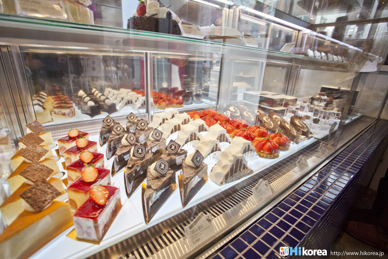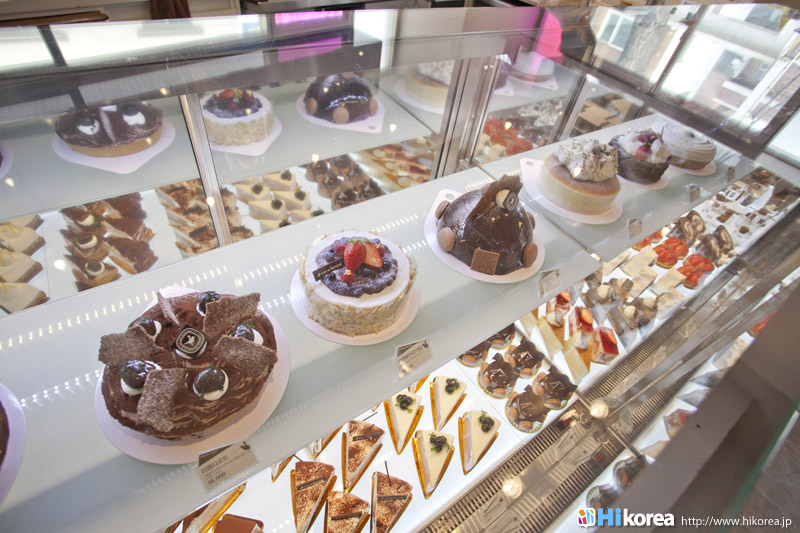 鮮やかなケーキが皆さんをお出迎え。ディスプレイに飾られたケーキはどれも美味しそう。毎朝作りたてのケーキなのでどれも新鮮!!味も日本のケーキに負けないんですよ♪