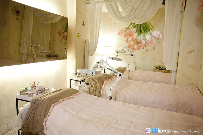 女性の皆さん、毎朝“眉毛”書いてますか?元々濃かったりしっかり形がある方は、毎朝の化粧の時も時間がかからずに済むと思います。でも薄かったり、形が定まってなかったりすると、毎日違う眉毛で外出・・・なんて事もしばしば。眉毛が薄いせいで、化粧の時の時間もかかるだけでなく、スッピンの時の顔の印象が薄いなど、問題も沢山あります。(泣)そんな方に是非オススメするお店が今回ご紹介する『SIZUKA』。韓国内でも美のエキスパートとして有名な方が、オーナーとして手がけるビューティサロンです。しかも超美人でお肌もツルツルのオーナー。この人が手がけるアートメイクとはどんなものなのでしょう。日本で働いていた経験もあるという事なので、日本語もペラペラ。アートメイクに強いこだわりを持って行っているとの事なので早速話しを聞きに行ってみました。明洞繁華街のメインストリートからすぐ(近くに移転)1階 1階 2階室内も外観と変わらぬカフェの様なデザインで統一されています。所々に描かれている花の絵がキュートで女性らしさを強調させます。床やネイル台などのインテリアにもこだわりが。ここでゆったりとした時間を過せる事間違いなしって感じです。施設は足湯スペース二ヶ所、ネイル台6台、ベッド5台があります。 “3D自然アートメイク”“3D自然アートメイク”とは、眉毛のラインを縁取って中身を塗って行く施術とは違い、毛並みに合わせて細かくタッチで描いて行く施術の仕方です。お化粧で書く眉毛とは違い自然で、スッピン状態でも全く違和感がない仕上がりになります。施術はまず眉毛の形を左右対称にするために測定器具やカメラ撮影などで綿密に確認後、色などを決めていきます。色を決めるときは、皮膚の色や瞳孔、地毛の色などを参考に自然なカラーを。その後施術に入りますが、アートメイクは体質によって相性が全く違うそうで、色がスッと入る人と、入れた瞬間血が滲み出てしまう方がいるんだそう。なので予めから事情を説明し、お客さんに理解してもらってから始めるんだそうです。期間は長くて約3年持つそうですが、それも個人差によっては大幅に差があるそう。肌が敏感な方は、何度がお直しする方が良いようですよ。