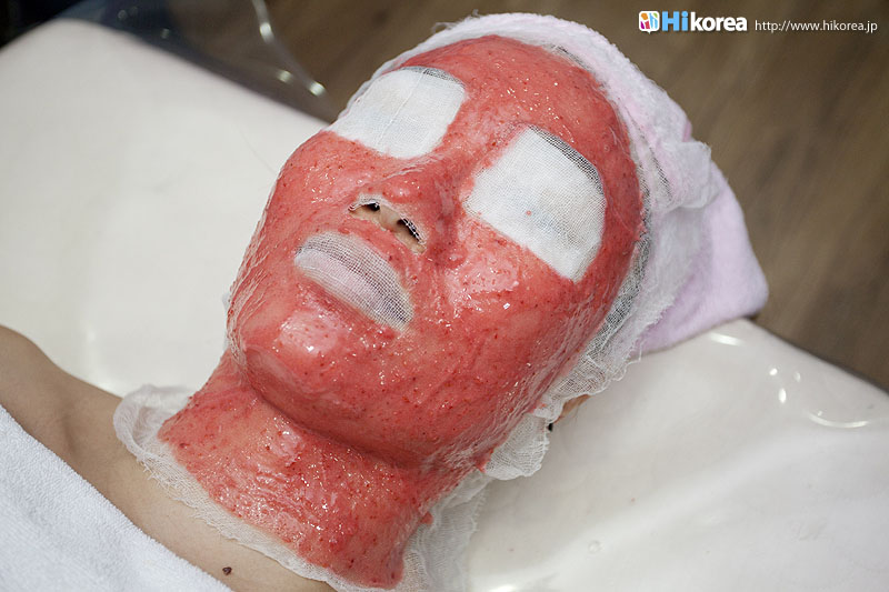 フルーツパック”は、ひとりひとりのお肌の状態を見て、一番その人にあったパックを選んでくれます。フルーツをすりつぶしたものに『MIZOエステ』秘法の配合で作られたパックを、ガーゼの上からのせて25分ほど置きます。パックが終わればフルーツを拭き取り、パフでクレンジング。すると見る見るうちに、お肌が白くなっていくので驚きです。その後、熱~い蒸しタオルで気持ちよく拭いてくれます。またフルーツパック全般に保湿効果があるとされています。