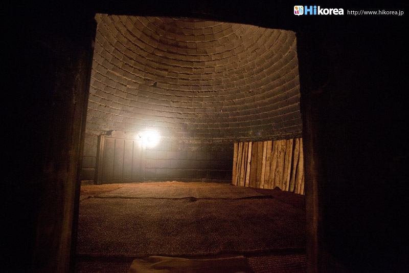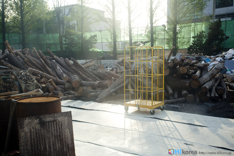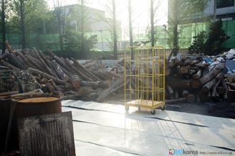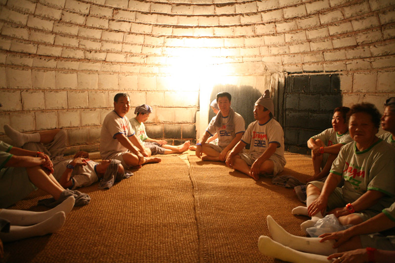 こちらは低温、中温、高温、超高温等の温度によって分かれている韓国伝統クヌギ炭室。こちらの炭はここで直接切って作っています。実際に焼いて温めているので、何種類もの違う温度の部屋を作れるんですね。