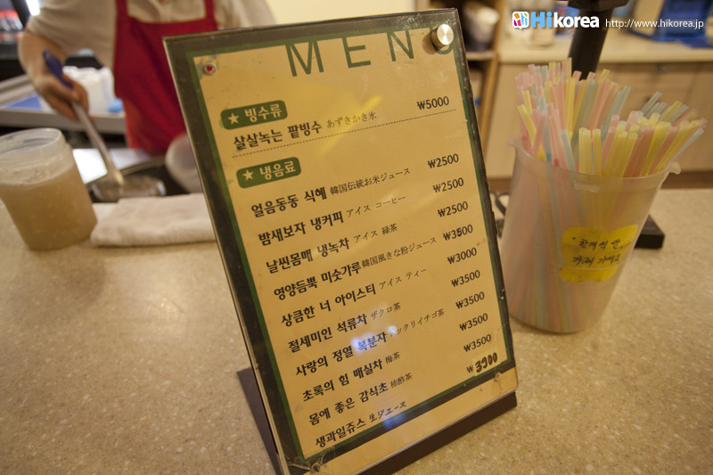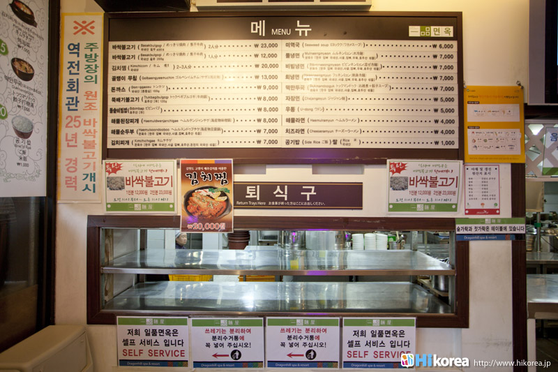 遊んでいるとお腹も空きますよね。って事で食堂にやって参りました。こちらは“一品麺屋”という韓国料理屋サンです。麺屋という名前だからって、ラーメン屋ではないですよ(笑)座敷席やテーブル席などパターンも充実していて、冬はオンドルが聞いていますのでポカポカあったか(*^。^*)韓国に来たのでやっぱり韓国料理を!という方、こちらのお店がオススメです。