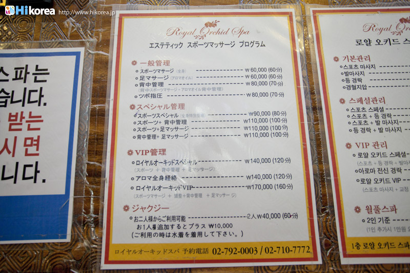 韓国のチムチルバンで絶対欠かせないのが、 ゆで卵とシッケ(お米のジュース)こちらはチムチルバンに来る韓国人なら誰でも飲み食べるという物です。これが無ければチムチルバンじゃない!と言う人まで居る程。日本人のお客さんもドラマなどで見たことあるのか、試しに買って食べてる方が多いそうですよ。ここでも小さな文化体験が可能なんですね。他にお紅茶やジュース、お菓子など色々売っていますので、おやつ休憩にどうぞ(*^-^*) マッサージやエステも充実! 『ドラゴンヒルスパ』では エステやスポーツマッサージも充実しいて、特別なエリアが設けられています。一歩足を踏み入れると、そこは高級感タップリの空間。 10台程のマッサージ台やVIPルーム、シャワー室に貸切スパルーム(大・小)など、最高のリラックス空間を提供してくれます。もちろん、鏡台や個室もあるので、その後のメイクアップなども問題無しです!貸切スパルームは超人気で、カップル達が沢山利用するんだとか。ロマンティックに演出された個室で二人きりの思い出を作るのも素敵ですね☆スポーツマッサージやエステの料金は、下の料金表を参考にして下さい!ここでピッカピカの体に大変身してみては如何でしょうか。