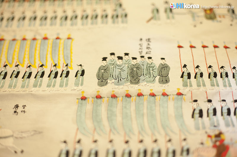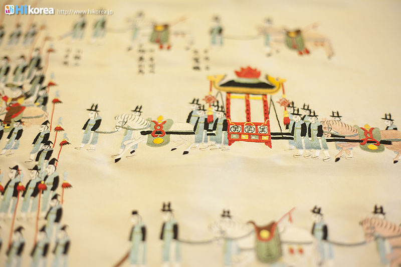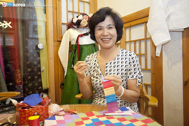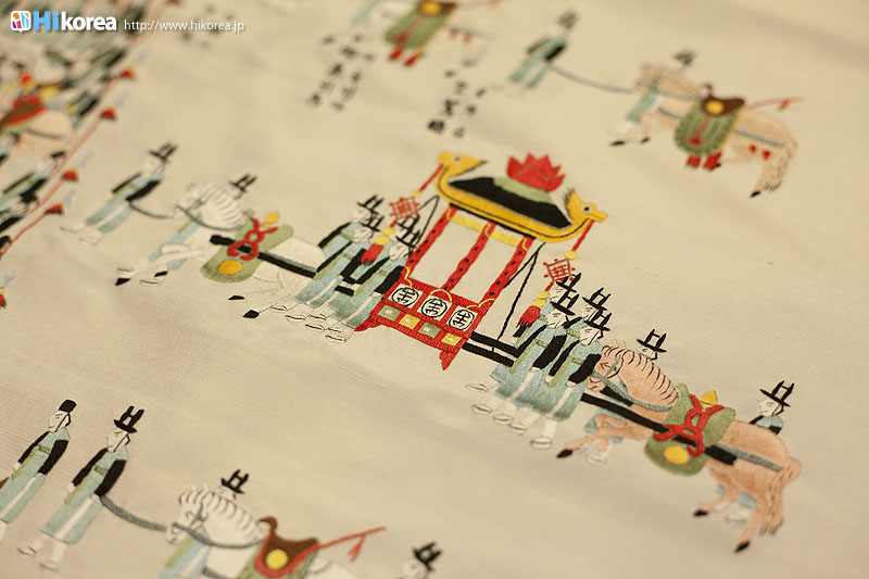 手鏡・茶たく 小銭入れ もっと伝統的な韓国を味わいたい、そんな方には伝統小物の小銭入れ・手鏡・茶たく作り体験がおすすめです。 ※ベースは完成していて、そこにデコレーションをします。 スタッフさんが直接教えてくれるので、初心者の方も簡単に作れちゃいますよ。 あなただけの一着を作ってみませんか?お店の名前にもなっている、デザイナーのユンヘヨン先生 ユンヘヨン先生は30年の経歴の持ち主!そんなプロが作るチマチョゴリは一着一着がまるで作品です。 思わずため息が出てしまう貴重な作品に出会いました!!こちらは「陵行図」というもので、正祖大王(朝鮮第22代王、1752~1800)が母・恵慶宮洪氏にお供して水原華城と思悼世子(正祖の父)の墓である隆陵を参った8日間の儀典行列を描いたものです。人や馬など全部刺繍で出来ているから驚きです! チマチョゴリのアクセサリーのノリゲ ポジャギコリアンスタイルの小物も チマチョゴリのオーダーメイドだけではなく、チマチョゴリのアクセサリーや韓国版風呂敷のポジャギ、刺繍が施された小物(スリッパ、クッション、枕、布団など)の販売もあります。思わず見とれてしまうほど、どれも色使いが上品なキレイさでした! ちょっと変わった思い出作りを。 |