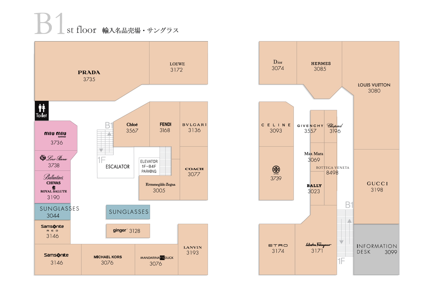 案内デスク ![]() 『東和免税店』に行きましたら最初も最後もこの案内デスクによることをおススメ致します。最初によるのはまずご来店プレゼントをこちらでもらうことが出来るからです。ハイコリアのクーポンをご提示しますと来店プレゼントが!!また、こちらでお客様のお荷物の預かりやベビーカーの貸し出しも行っていますので最初に寄るとお得なショッピングが出来るわけです。もうひとつ最後にもよるのはお買い物のブランドや合計金額によってプレゼントや謝恩券などがもらえるので是非このお得情報をお見逃しなく~~。案内デスクは1階の正面右側の入り口に入ってすぐにあるエスカレータに乗り、地下1階におりますとすぐ右側にあります。 ブランドショップ 『東和免税店』は長年やってきただけあって海外ブランドショップも充実しています。もっとも人気のあるLOUIS VUITTON,CHANEL,HERMES,GUCCI,Christian Diorはもちろん、最近はビックブランドのTORY BURCH、PRADA、MIUMIUも新規入店しますます充実したラインナップになりました。 ![]() FENDI ![]() LOEWE ![]() LOUIS VUITTON ![]() TORY BURCH ![]() S.FERRAGAMO SG ![]() COACH ![]() PRADA ![]() BOTTEGA VENETA ![]() ETRO サングラスZONE ![]() ![]() 地下1階に広くスペースを設置されたサングラスZONEは海外ブランドや韓国ブランドなど数多くのサングラスを展示販売しています。 ![]() 1F(正面左側)-韓国商品売り場 『東和免税店』の1階フロアは右側と左側に分かれています。左側の1階フロアは韓国コスメの中でも中低価格のブランドを中心に売り場があります。また、韓国工芸品や韓国海苔などの韓国伝統お土産、家電製品、紫水晶なども販売します。