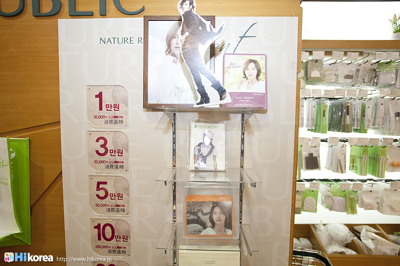 自然の恵みからうまれた『ネイチャーリパブリック』のコスメたち。2009年3月に誕生してから、多くの人たちに支持されてきたコスメショップです。今では韓国国内外でたくさんの店舗を展開している中、ここワールド店は直接『ネイチャーリパブリック』の会社が経営している直営店となっています。そのため一階は一般フロア、二階には外国人専用のフロアーになっているので、言葉の心配もなくゆっくりショッピングができるようになっています。イメージキャラクターにグンちゃん(チャン・グンソク)とKARAを向かえ、益々注目アップのコスメショップです。
