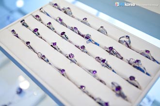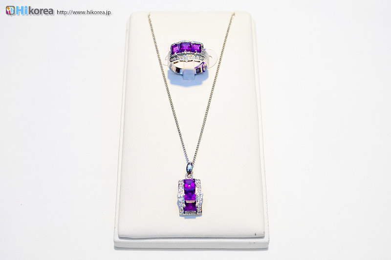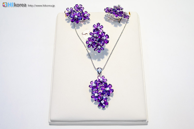 ネックレス(セットは別々でも購入できます。) リング 天然石(全て天然石のみ使用。天然石の為、色が少し違うのが特徴) ブローチなどのセットもあります ギリシャ神話のお話 ある日、酒の神バッカスがトラと一緒に散歩をしているところ、自身の気分転換の為、散歩道で出会った一人目の人をトラのエサにしようという作戦をたてました。一番初めに現れた人はダイアナ神殿に参拝しようと出て来た、美しい服を着た純潔な少女でした。トラがその少女を取って喰おうと走り出した瞬間、ダイアナ女神がその少女を白い石に変化させ、その化石の美しさに感服したバッカスは自分の過ちを悔い、その化石にワインを注ぎその白い石はワイン色に赤く変わりました。そしてその石になった美しい少女の名が、まさに“アメジスト”だったという伝説です。その後紫水晶はアメジストと呼ばれ、純潔な不屈の意思を象徴する石と広く知れ渡りました。 中世キリスト教社会では紫水晶の純潔さが高い評価になり、教会の儀典祭器に紫水晶が沢山使われ、長く宗教の律法と禁欲を象徴しました。それにより樞機卿の指輪に主に使用されており、今でも新婦や牧師の指輪に広く使われています。聖書で見れば、紫水晶はアロン(Arron)の胸碑にも、そして昔のイスラエル祭司長(ユダヤ教の指導者)の腰ベルトにも装飾され、今だにイギリスの皇室に装飾されていて、韓国でも1500ねん余り前の三国統一新羅時代初期から王室と貴族達の装身具に使われ、特に仏教で装飾用に沢山使われている美しい宝石です。 アフターサービスもしっかりしていますまたアフターサービスとして購入された際のレシートをご持参頂ければ故障などがあった場合、購入時から1年以内だと無料で修正のサービスをしてくれます。何かあった場合でも日本語で対応がきくのも嬉しいですね!! 入り口に入ってすぐ見学が可能です▶ 紫水晶は「アメジスト」へ皆さん、ソウルアメジストいかがでしたか!? 今まで知らなかった紫水晶について少し勉強になったのでは!? こちらのスタッフの方々も詳しく説明してくれるので何か聞きたい事があれば、遠慮なく聞いてみましょう。アメジストに秘められたのパワーで皆さんもその魅力に気づくのでは!? さらに嬉しいサービスが!!訪問さえすれば高級ストライプ贈呈!!! ^ 0 ^ |