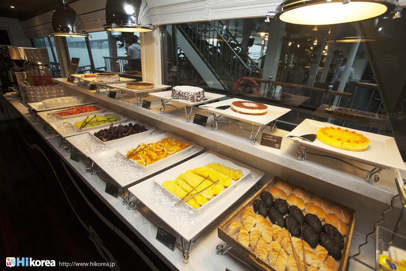 これからは『漢江ビュッフェ遊覧船』の醍醐味!!美味しいお料理を体験しましょう。『漢江ビュッフェ遊覧船』はソウル最大の川、漢江でのロマンチックな夜景を見れる。以外にもこの美味しいお料理も大評判!!地元の韓国人にも観光客にもお受けできるバラエティーに富んだ韓、和、洋、中の世界の料理が堪能できます。その数々をご紹介します。