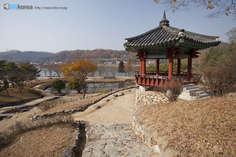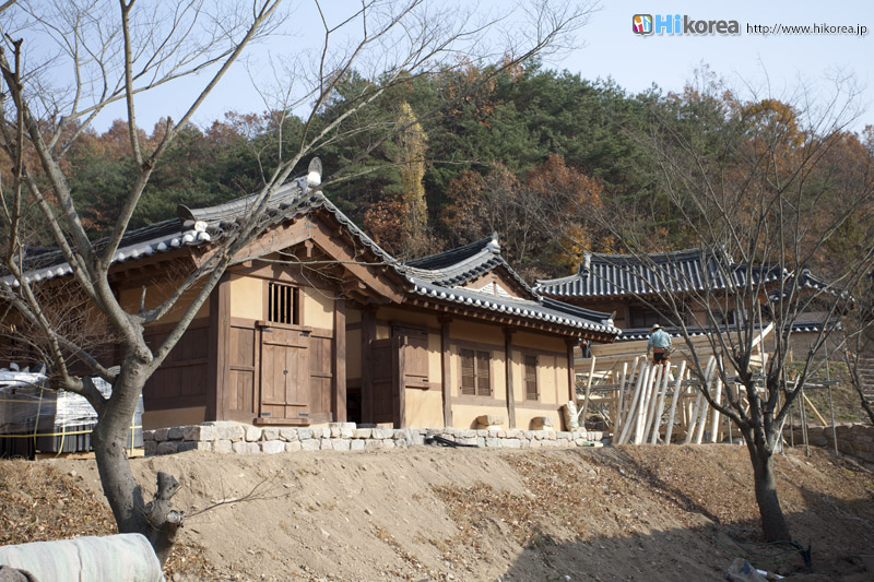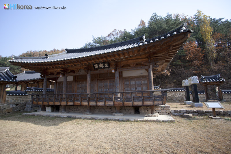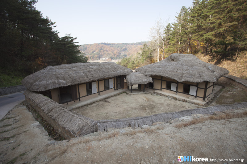 『安東民俗村(アンドンミンソクチョン)』は安東民俗博物館の野外博物館として、安東ダムの建設によって水没することになった地域から移築された藁ぶきの家屋や瓦ぶきの家などを保存するために1976年に造られました。『安東民俗村』には14軒の伝統家屋があり、大部分は安東地域の郷土料理を味わうことができる伝統料理店となっています。『安東民俗村』の入り口には二つの大きなチャンスン(丸太に人の顔をこっけいに彫ったもの)があり、その横には安東出身の有名な詩人・李陸史の詩碑があります。詩碑の後ろに続く坂を進むとドラマ「太祖王建」の撮影地があり、撮影に使われてた高麗時代の役所や牢獄・民家など20数件の建物を見学することができます。ここがドラマ「太祖王建」の撮影地に選ばれたのは、王建が高麗を建国する時に安東の豪族たちが彼を支持して王建を助けたという歴史的背景があるからです。 |