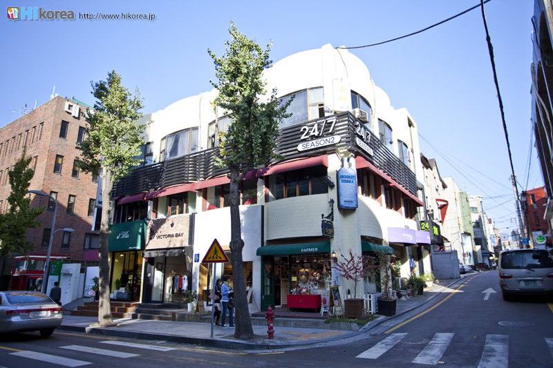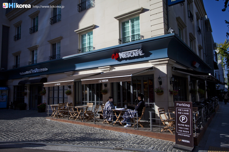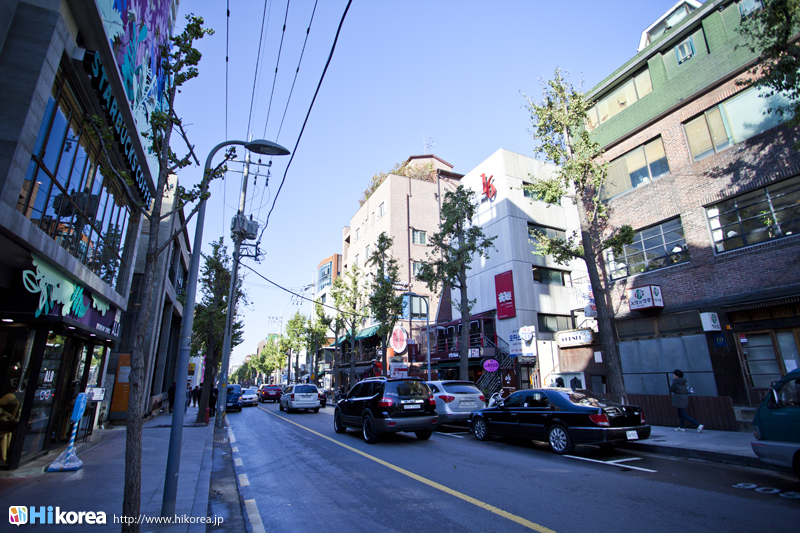 『新沙洞(シンサドン)』には、大きく分けて二つのエリアがあります。一つは江南を代表するオシャレストリートの“カロスキル(街路樹通り)”、もう一つはご飯泥棒とも呼ばれているカンジャンケジャンを食べさせてくれるお店が軒を並べている“カンジャンケジャン(カニの醤油漬け)通り”です。“カロスキル”は、その名の通りイチョウ並木が1kmほど新沙駅付近から狎鴎亭方向へ延びていて、アーティストのオープンスタジオや各種工房をはじめ、カフェやギャラリー・レストラン・バー・ファッションマルチショップ・小物店などの多彩な空間が広がっていて、建物の一つ一つにセンスが光っています。また、最近“カロスキル”の裏通り“セロスキル”もお洒落さんから注目を浴びている場所となってます。そして、もう一つのエリア“カンジャンケジャン通り”では、元々アンコウの蒸し物の専門店が軒を並べていましたが、いつからかカンジャンケジャンの方が有名になった通りです。 |