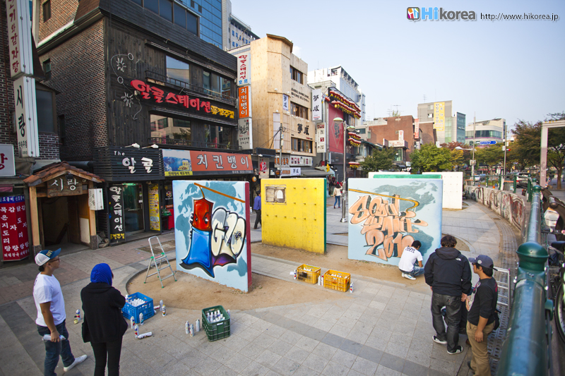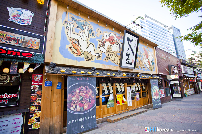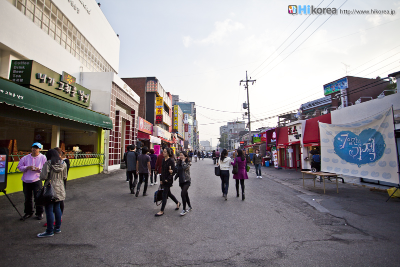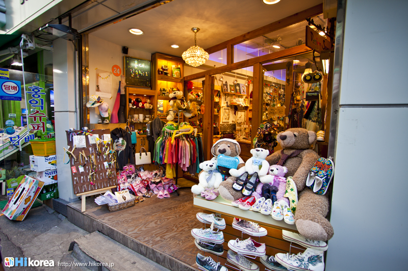 『弘大(ホンデ)』は、もともと芸術系大学の最高峰・弘益大学(ホンイッテハッ)を略した言葉でしたが、『弘大』一帯にはマニアックな人々が集うライブカフェやクラブが集まって独特な文化を形成しているため、弘益大学自体よりは弘大周辺の通りや、その通りの文化を指す言葉としてとらえられています。クラブでは好きなジャンルの音楽を聞きながら踊り、明け方まで踊り続けて時間を過ごす若者をよく見かけます。そして毎週土曜日に開かれる弘大正門前付近の弘大フリーマーケットも、『弘大』の名物として有名です。アーティストの手づくりによる手工芸品や絵画・中古品・オリジナル製品など、世の中でたった一つだけの品物を安く買うこともできます。また、一歩裏通りに入ると雰囲気のある隠れ家的なレストランやバーが点在していたり、おいしい焼き菓子やかわいいカップケーキの店などもたくさん出来てきました。 |