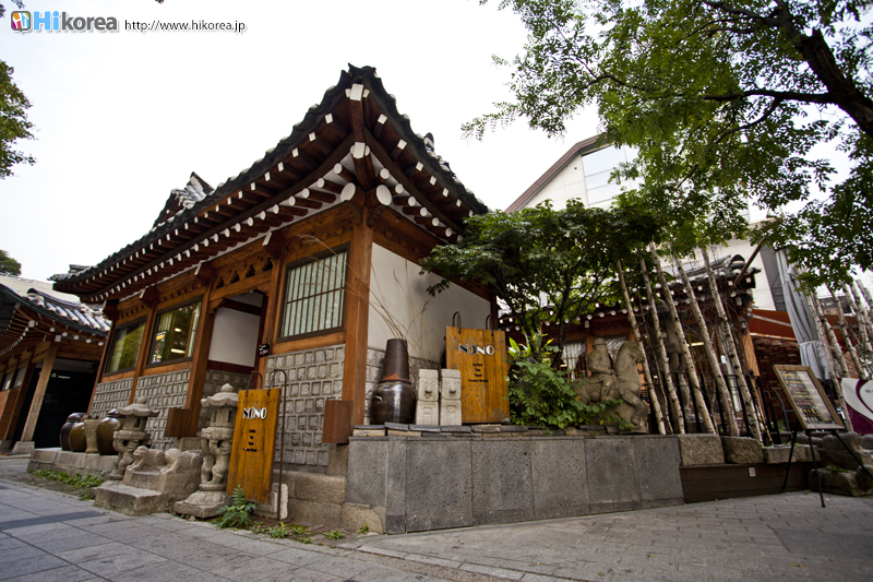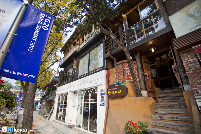 『三清洞(サンチョンドン)』は景福宮の北東の辺りにある北村(プッチョン)と呼ばれる一帯の中に位置しています。この一帯は朝鮮王朝時代に貴族や高官たちがたくさん暮らしていた所で、昔ながらの韓屋(韓国の伝統家屋)が密集しています。そのため『三清洞』では、その韓屋を改装してお洒落なカフェやレストラン・ギャラリー・骨董品店など、個性豊かなお店が建ち並んでいたり、庶民的な食堂・茶房などが混在していて、のんびりと散策を楽しむのにぴったりです。そして、なんと言っても『三清洞』の醍醐味は、丘状の地形に軒を連ねるノスタルジックな韓屋と、その間を迷路のように入り組む細い路地です。その路地の奥にも素敵なお店が潜んでいるので、ゆっくり散策しながら素敵なお店探しをするのも楽しいです。 |