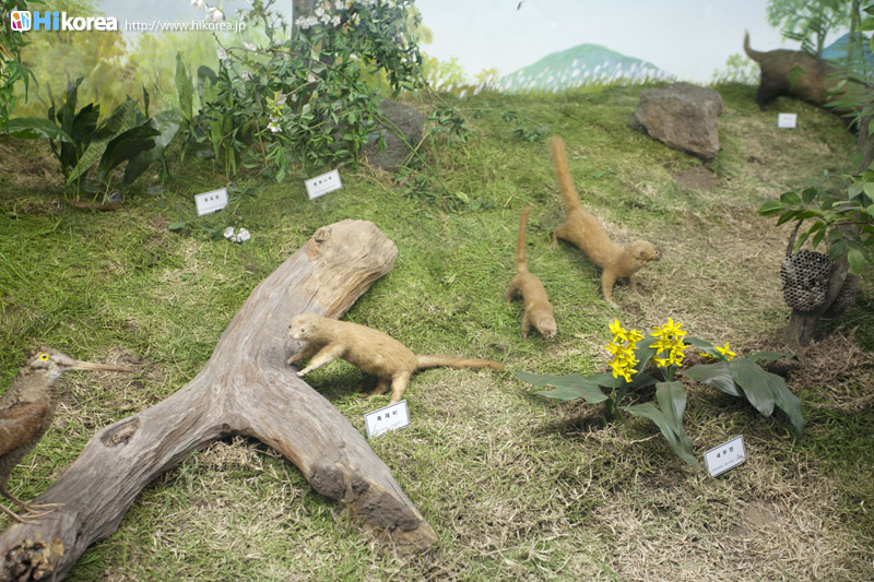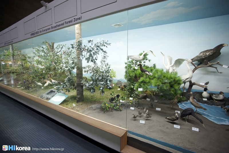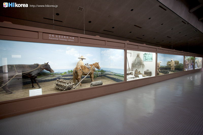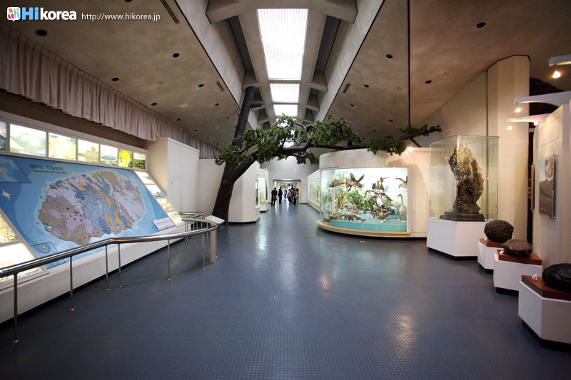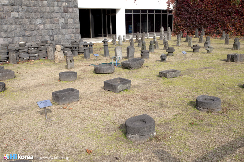 『済州民俗自然史博物館』は、済州島独自の自然や風習ついて学べる博物館です。1984年に開館した『済州民俗自然史博物館』では、“自然史展示”、“民俗展示”、“岩民俗展示”の3つで構成されていて、“自然史展示室”には済州島の海に生息する海洋生物354点、済州島に住む昆虫の標本512点などが展示されています。また“民俗展示室”は、海と共に生きて来た済州島の人々の古くからの生活様式を蝋人形で再現していて、広々とした屋外には“岩石展示場”があり、そこには済州島ならではの火山岩と石を使った生活用具100点以上が、あちらこちらに展示されています。そして、ロビーには大型魚類や海洋生物に関するジオラマ展示をはじめとし、済州島形成史や様々な種類の岩石、漢拏山(ハンラサン)の植物分布図、昆虫、哺乳類など、済州島の形成過程や生態までもが一目で分かるようになっています。