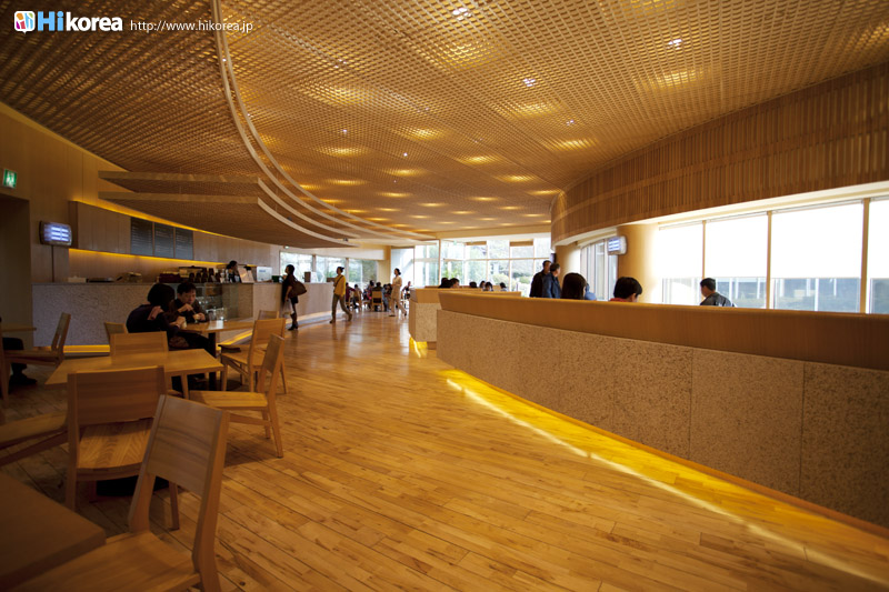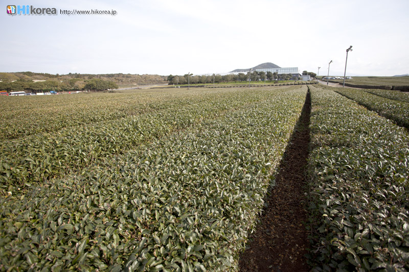 『オソルロク ティー ミュージアム』は、月韓国の緑茶ブランド“雪緑茶(ソルロクチャ)”を生産している(株)アモーレパシフィックが設立した、韓国で初めてできた“お茶専門博物館”です。“雪緑茶”の茶畑は済州島の中に3ヶ所あるのですが『オソルロク ティー ミュージアム』は、その中でも一番広大で、広さは4万坪を誇る“西広茶園(ソグァンタウォン)”中に位置しています。館内では伽揶時代から朝鮮時代の時代ごとのお茶碗・杯を展示したギャラリーや韓国・日本・中国のいろいろなお茶を展示したコーナー、18~20世紀のアジアの茶碗やヨーロッパのブランド茶碗や韓国のお茶文化を紹介するコーナー、緑茶デザートや緑茶が楽しめるカフェコーナーなどがあって、お茶に対することが学べます。また二階には展望台があって、周りに広がる広大な茶畑を見渡すことができます。