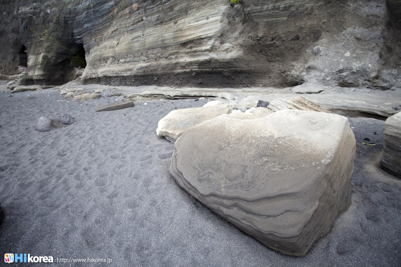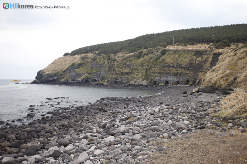 『松岳山(サンアクサン)』は、日本でも大人気だった韓国時代劇ドラマ“宮廷女官 チャングムの誓い(大長今)”のロケ地として一躍有名になったところです。クライマックスの最終回の名場面、妊婦のお腹を帝王切開して赤ちゃんを取り上げ、妊婦と赤ちゃんを助ける場面を撮影した場所です。『松岳山』の崖の下には15本の洞窟がありますが、これらは天然の洞窟ではなく日帝時代、人工的に掘られた洞窟です。第2次世界大戦当時、日本軍が軍事物資を隠すために海岸の絶壁にいくつもの洞窟を掘った名残です。また、ここは韓国最南端の島『馬羅島(マラド)』行きの船着場でもあり、海抜104メートルの『松岳山』の頂上に登って海の方を見渡すと馬羅島・加波島(カパド)・兄弟島(ヒョンジェド)が臨め、また近くは山房山(サンバンサン)、遠くは漢拏山最終回頂上まで限りなく見渡せる展望台のような所となっています。
