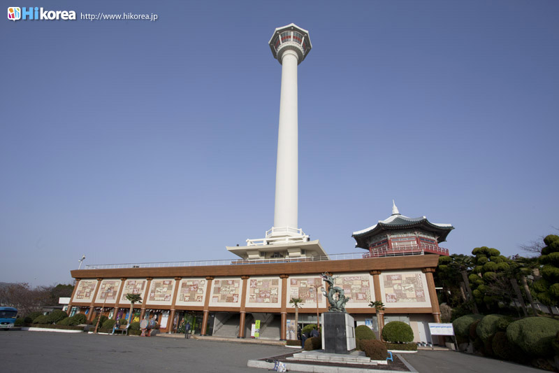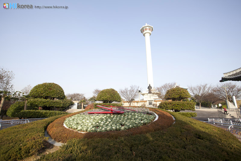 釜山市中央にある小高い丘全体が公園になっているのが『龍頭山公園』です。龍頭山は昔鬱蒼とした松林が広がっていて、その松の間から海が見えたことから“松峴山”と呼んでいました。しかし、その後山の形がまるで龍の様に見えたことから、日本からやって来る倭寇たちを飲み込んでしまうようにと龍頭山と呼ぶようになりました。『龍頭山公園』を中心とした場所に、8.15光復前(開放)まで日本人居留地があり多くの日本人が住んでいました。また釜山タワーの辺りには、龍頭山神社という神社もあったそうです。『龍頭山公園』には、釜山市内が一望できる高さ120mの釜山タワーや韓国の英雄・李舜臣将軍の銅像、花時計、釜山市民の募金によって作られた鐘などがあり、観光客や釜山市民の憩いの場所となっています。