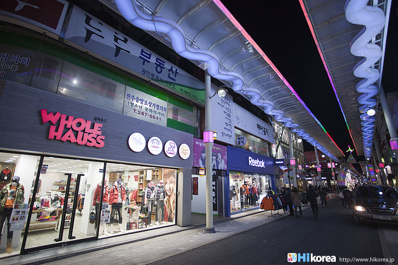 “全州客舎”のすぐお隣にある『歩いてみたい通り』は全州一の繁華街で、若い人に人気のあるショップやコスメショップ・映画館・飲食店まで、ありとあらゆるお店が立ち並んでいます。さながら全州の“明洞”といっても過言ではなく、全州市民の出会いの場となっています。また『歩いてみたい通り』には、屋台などもあって地方のB級グルメにも出会え、ソウルとはまた違った物も味わえます。『歩いてみたい通り』の周りにはその他、全州国際映画祭で有名になった“映画通り”、長年の歳月の軌跡がそっくりそのままのこっている“東門文化通り”、ソウルの梨大にあるウェディングタウンのように結婚式の衣装のお店が並んだ“ウェディング通り”などがあり、特徴のある通りが目白押しです。全州客舎の隣に位置ゆっくりショッピングを・・・ |