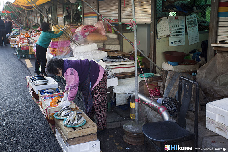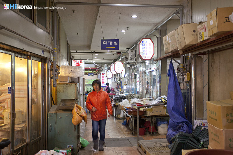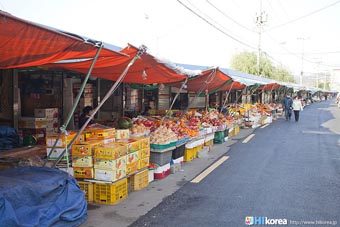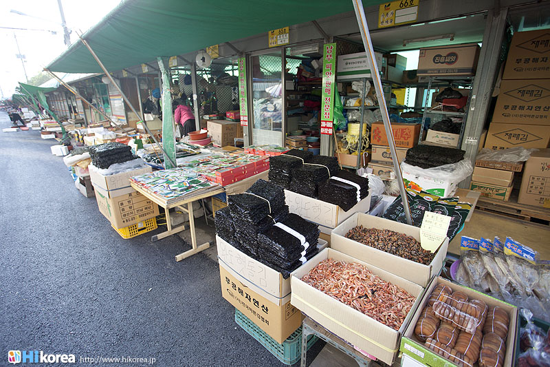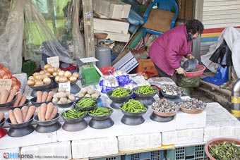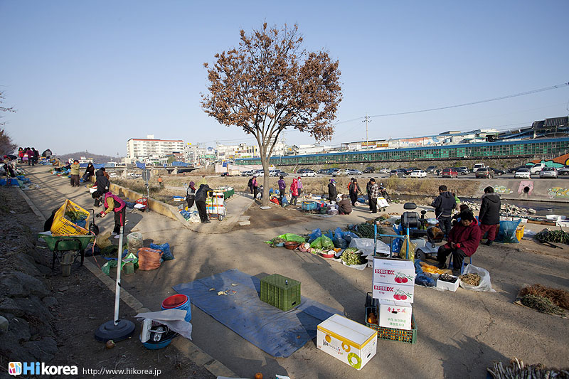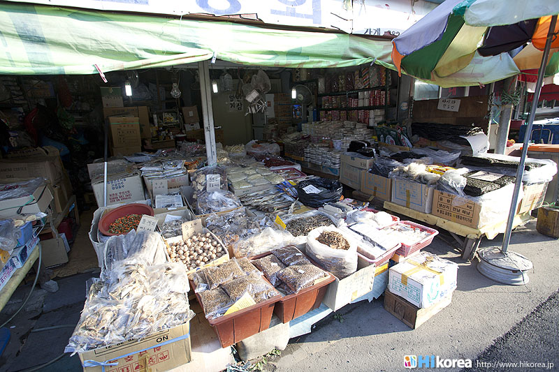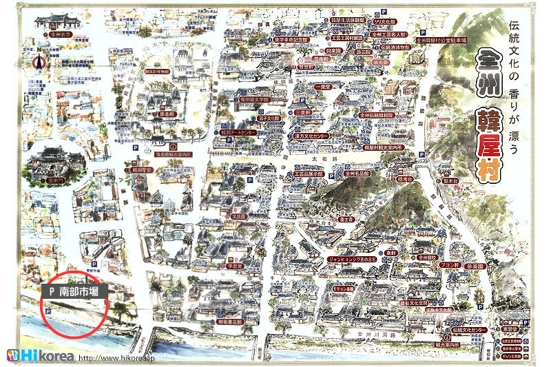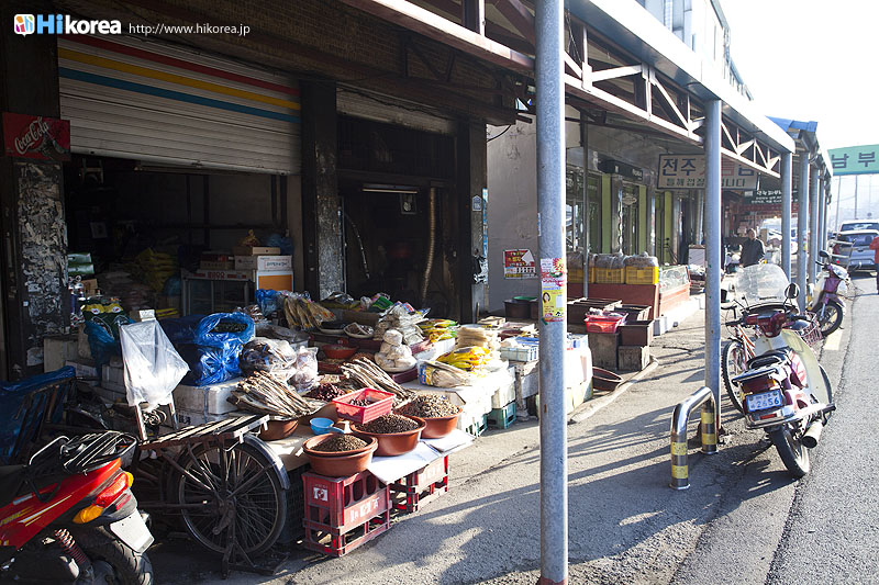 全州市の南東に位置『南部市場(ナンブシジャン)』は全羅北道(チョンラブッド)全州市(チョンジュシ)完山区(ワンサング)殿洞(チョンドン)に位置しています。また全州市の南東にあり、ソウルから南に約250kmの所に位置しています。売場面積は、16,967㎡、店舗数は約800軒にも達します。道を挟んで向かい側には全州韓屋村(チョンジュハノクマウル)があり、その中には慶基殿(キョンギジョン)・殿洞聖堂(チョンドンソンダン)・全州郷校(チョンジュヒャンギョ)・学忍堂(ハギンダン)・同楽園(トンナグォン)・梧木台(オモッデ)などがあります。全州韓屋村からとても近いので二つ合わせて行くのをお勧めします。 ![]() 何でも揃う『南部市場』きす 八百屋 乾物屋 寝具屋 精肉屋 乾物屋 韓方薬 鮮魚屋 マテ貝 雑貨屋 塩辛屋 八百屋 衣料店 カワニナ 鯉 鶏肉 きのこ 豆もやし 出来立ての豆腐 トドリムッ(どんぐりの寒天) 市場の中 『南部市場』は、全州一大きな市場だけあって何でも揃うので、料理上手の全州の奥さん達の強い味方です。野菜・鮮魚・精肉・鶏肉からコンナムルクッパに使う自家製の豆もやしや、湯気を上げてる出来立ての豆腐やトドリムッを見ていると、もうよだれものです。特に地方の市場は、その地方地方の特色が色濃く出ているので、楽しみが倍増します。また食料品だけでなく寝具店や雑貨店、もんぺやアジュンマ服を売っている衣料店など様々な種類の店舗が軒を並べています。地方に行くと観光地だけ回ってしまいがちですが、是非その地方で根付いてる市場を覘いてみて下さい。その土地の人柄や食文化などに触れる事ができるでしょう。 南部市場の川を挟んだ向かい側の河川敷で商売をしている人々 橋の上で自家栽培や自分で作ったものなどを不定期に売りに来ている人々 |