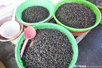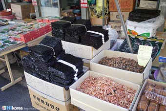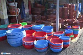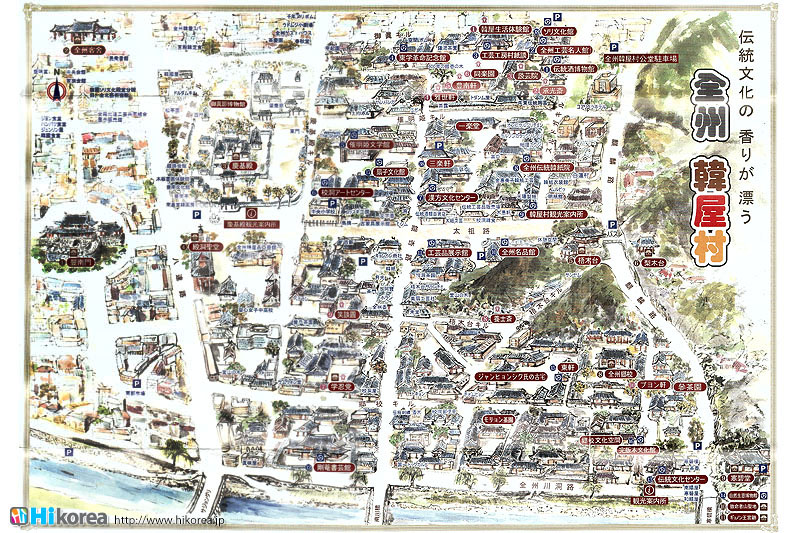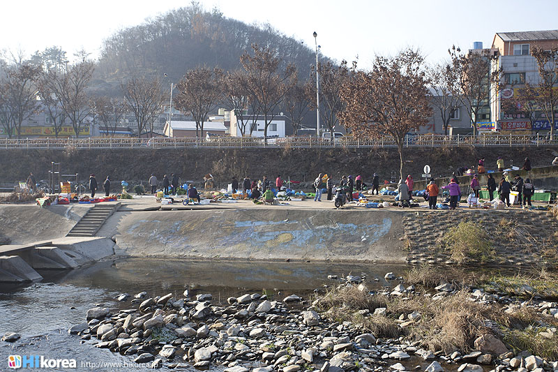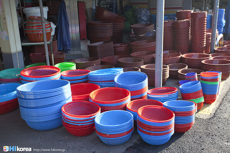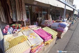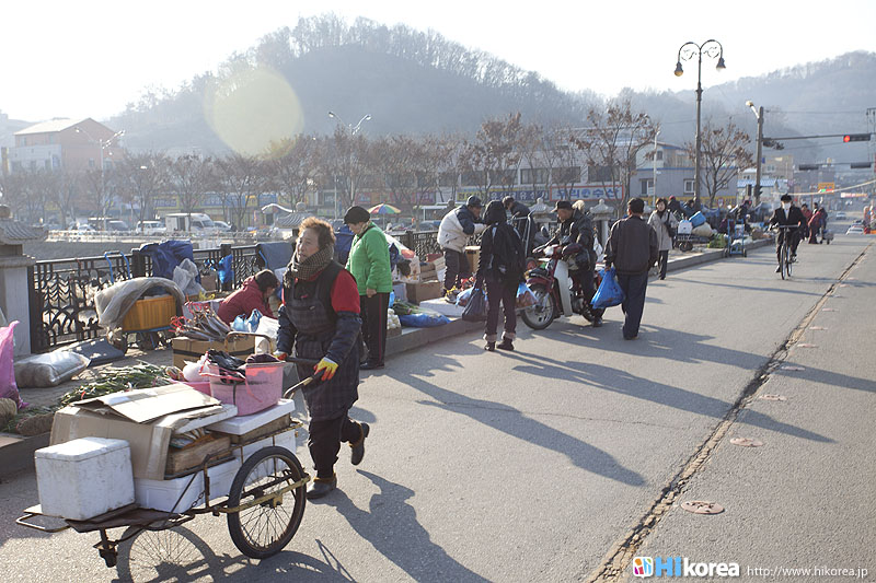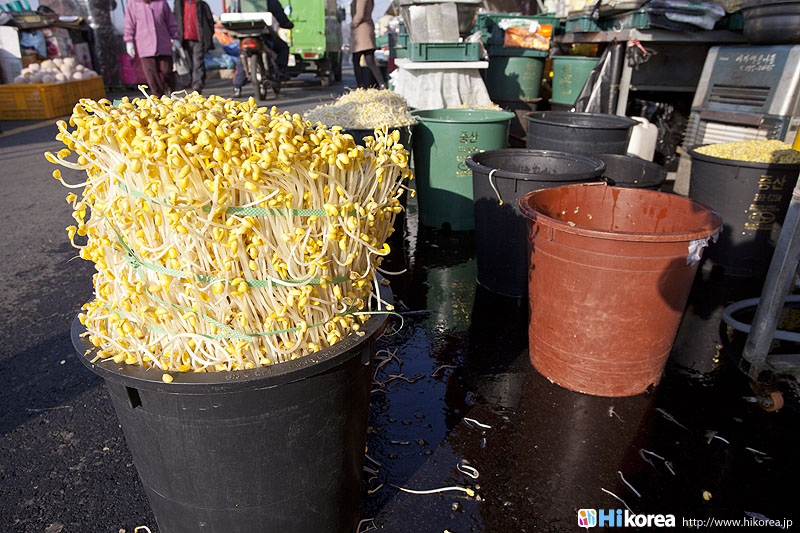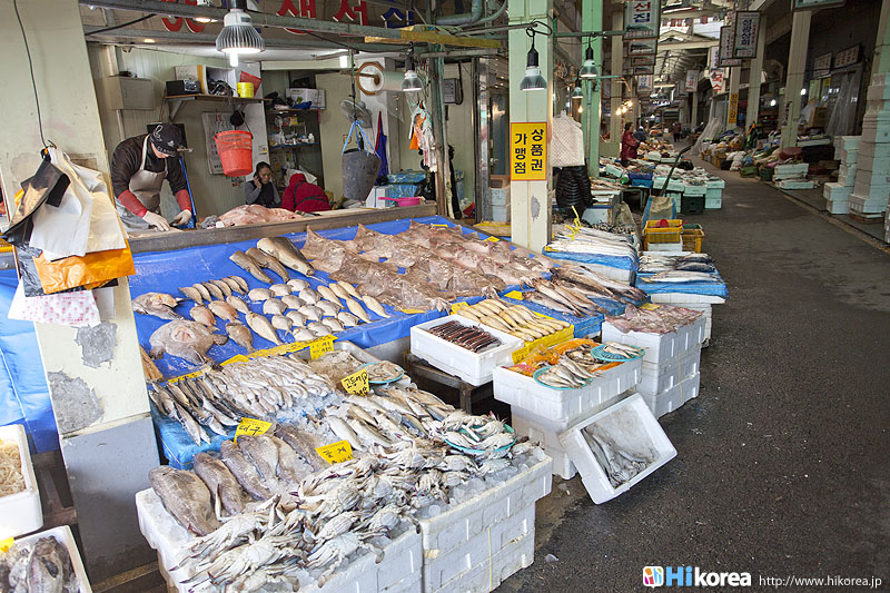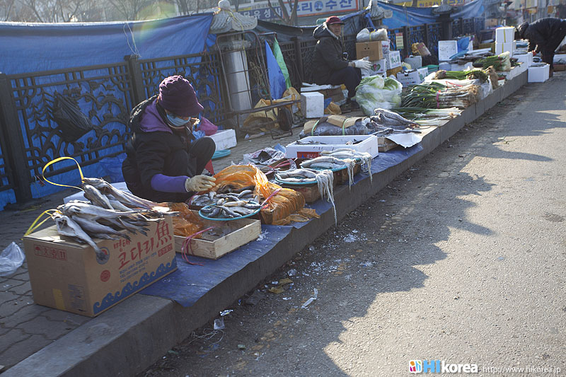 全州市の南東に位置『南部市場(ナンブシジャン)』は全羅北道(チョンラブッド)全州市(チョンジュシ)完山区(ワンサング)殿洞(チョンドン)に位置しています。また全州市の南東にあり、ソウルから南に約250kmの所に位置しています。売場面積は、16,967㎡、店舗数は約800軒にも達します。道を挟んで向かい側には全州韓屋村(チョンジュハノクマウル)があり、その中には慶基殿(キョンギジョン)・殿洞聖堂(チョンドンソンダン)・全州郷校(チョンジュヒャンギョ)・学忍堂(ハギンダン)・同楽園(トンナグォン)・梧木台(オモッデ)などがあります。全州韓屋村からとても近いので二つ合わせて行くのをお勧めします。 ![]() 何でも揃う『南部市場』きす 八百屋 乾物屋 寝具屋 精肉屋 乾物屋 韓方薬 鮮魚屋 マテ貝 雑貨屋 塩辛屋 八百屋 衣料店 カワニナ 鯉 鶏肉 きのこ 豆もやし 出来立ての豆腐 トドリムッ(どんぐりの寒天) 市場の中 『南部市場』は、全州一大きな市場だけあって何でも揃うので、料理上手の全州の奥さん達の強い味方です。野菜・鮮魚・精肉・鶏肉からコンナムルクッパに使う自家製の豆もやしや、湯気を上げてる出来立ての豆腐やトドリムッを見ていると、もうよだれものです。特に地方の市場は、その地方地方の特色が色濃く出ているので、楽しみが倍増します。また食料品だけでなく寝具店や雑貨店、もんぺやアジュンマ服を売っている衣料店など様々な種類の店舗が軒を並べています。地方に行くと観光地だけ回ってしまいがちですが、是非その地方で根付いてる市場を覘いてみて下さい。その土地の人柄や食文化などに触れる事ができるでしょう。 南部市場の川を挟んだ向かい側の河川敷で商売をしている人々 橋の上で自家栽培や自分で作ったものなどを不定期に売りに来ている人々 |