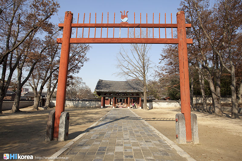 『慶基殿』は朝鮮王朝の始祖、李成桂(イ・ソンゲ)・太祖(テチョ)の肖像画を奉るために太宗10年(1410年)に建てられました。しかし、文禄・慶長の役の際に焼失してしまったため、1614年に現在の『慶基殿』が再建されました。正面一番奥の“真殿”には李成桂(太祖)の肖像画が奉られ、“肇慶廟”には全州李氏の始祖の李翰夫婦の位牌を安置されています。また、太祖をはじめ純宗、哲宗、英祖など歴代の朝鮮王の肖像画や高官が使用した人力車、位牌を移動する際に使われた神輿などが展示されている“御真博物館”や朝鮮時代の両班屋敷、倉、庶民の家などを再現したスペースなどいろんな物があるので見ごたえたっぷりです。そして、朝鮮時代の面影を偲ぶことが出来る風格ある佇まいのため、歴史ドラマの撮影地としても使われドラマ「宮」や「明成皇后」なども、ここで撮影されました。全州韓屋村のシンボル的存在・『慶基殿』『慶基殿(キョンギジョン)』は、全羅北道(チョンラブッド)全州市(チョンジュシ)の南東に位置している『全州韓屋村(チョンジュハノクマウル)』の中にどーんと構えています。『慶基殿』の前の道・太祖路を挟んで向かいに殿洞聖堂があり、太祖路をそのまま真っ直ぐ進んで行くと梧木台にたどり着きます。全州韓屋村の中には全州郷校(チョンジュヒャンギョ)、そして宿泊や文化体験ができる学忍堂(ハギンダン)・同楽園(トンナグォン)などがあり、また近くには、全州で唯一残った城門である豊南門や全州で一番大きい市場の南部市場が、すぐそばに位置しています. ![]() 正殿(チョンジョン)正殿 慶基殿正殿(キョンギジョンチョンジョン)は朝鮮王朝を建てた太祖(テジョ)・李成桂(イ・ソンゲ)の御真(オジン:肖像画)を保管しているところで、太宗(テジョン)10年(1410)に建てました。太祖の肖像画を保管する建物は元々、開城(ケソン)・永興(ヨンフン)・全州(チョンジュ)・慶州(キョンジュ)・平壌(ピョンヤン)など五ヶ所にありましたが、慶基殿の正殿を省いた残りは文禄の役(1592年)の時全て焼けてしまいました。慶基殿正殿も慶長の役(1597年)の時に焼けてしまいましたが、光海君6年(1614)に再び建て、回廊を置いて最高の祠堂であることを示しました。慶基殿の入口には馬から下りる場所を表示した下馬碑、赤く塗られた紅箭門、內三門・外三門そして肖像画を奉る殿閣で構成されています。 正殿内部 外三門 外三門の梁部分 下馬碑 肇慶廟(チョギョンミョ)肇慶廟(チョギョンミョ)は、全州李氏の始祖である李翰(イ・ハン)夫婦の位牌を奉った祠堂です。李翰は新羅の時「司公(都城を積み直す仕事を受け持った官庁のひとつの官職)」という高い官職を務め、その婦人は慶州金氏です。朝鮮を建国した太祖・李成桂は李翰の21代下の子孫です。肇慶廟は朝鮮英祖(ヨンジョ)47年(1771)に建てて李翰夫婦の位牌を奉安しました。その後、哲宗(チョルジョン)5年(1854)に慶基殿と一緒に補修し今の姿に整えました。肇慶廟は慶基殿と共に全州が朝鮮王朝の発祥地であることを象徴するところとなっています。 全州史庫(チョンジュサコ)全州史庫 朝鮮王朝実録保全紀績碑韓国は高麗時代から春秋館と藝文館を常設して仕官を置き、毎日の出来事を記録し時代ごとの歴史を編纂したものを実録といい、特別に設置した史庫に奉安してきました。朝鮮王朝で実録を初めて編纂したのは、太宗9年(1409)から太宗13年(1413)までの4年間の太祖実録15巻でした。その後、世宗8年(1426)に正宗実録6巻を編纂し、そして世宗13年(1431)太宗実録36巻を編纂した後、太祖・正宗・太宗の三朝実録を各2部ずつ謄写し1部はソウルの春秋館、1部は忠州史庫に奉安しました。しかし2部だけの実録だけでは心配なので、世宗27年(1445)に再び2部を謄写し、全州・星州に史庫を新設し各1部ずつ分蔵しました。宣祖25年(1592)文禄の役の時、春秋館・忠州・星州の3史庫の実録は全て消失され、唯一全州史庫の実録が兵火を免がれることができたのでした。これは孫弘祿・安義などが実録を內藏山の龍窟庵に移安、死守したためでした。全州史庫には実録784巻614冊47櫃、その他典籍が64種556冊15櫃が奉安されていました。1597年文禄の役の時実録閣は消失しましたが、1991年これを復元し、朝鮮王朝実録(国宝代151号)は1997年ユネスコ世界記録文化遺産に指定されました。 御真博物館(オジンパンムルグァン)御真博物館は太祖御真(肖像画)の全州の奉安600年を迎えた2010年11月6日に開館しました。ここには宝物第931号である太祖御真を始めとし世宗・英祖・正祖・哲宗・高宗・純宗など歴代の朝鮮王の御真(肖像画)を展示しています。また太祖御真を奉安する際使用されたさまざまな神輿(シンヨン)・高官が使用した駕轎(カギョ)などと共に慶基殿の関連した物などが展示されています。 太祖御真 世宗御真 英祖御真 正祖御真 哲宗御真 高宗御真 純宗御真 太祖実録 世宗大王実録 慶基殿の付属寨①守僕庁(スボッチョン) 慶基殿の祭祀に関する事を受け持つ下級官員が守っているとこ