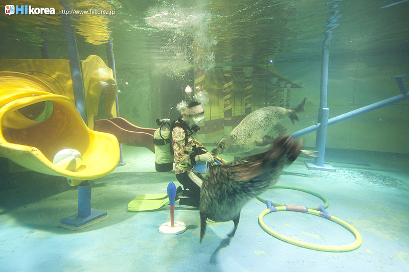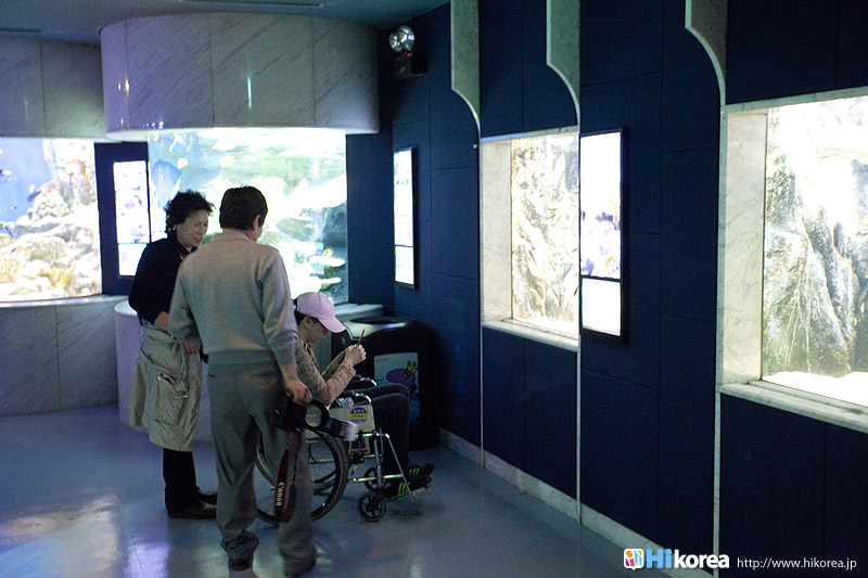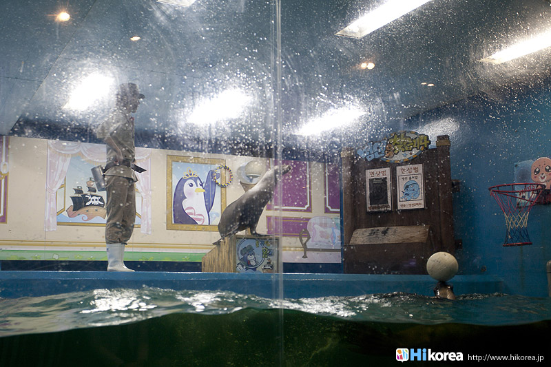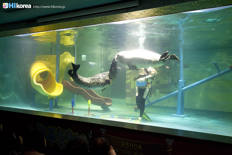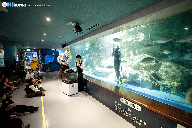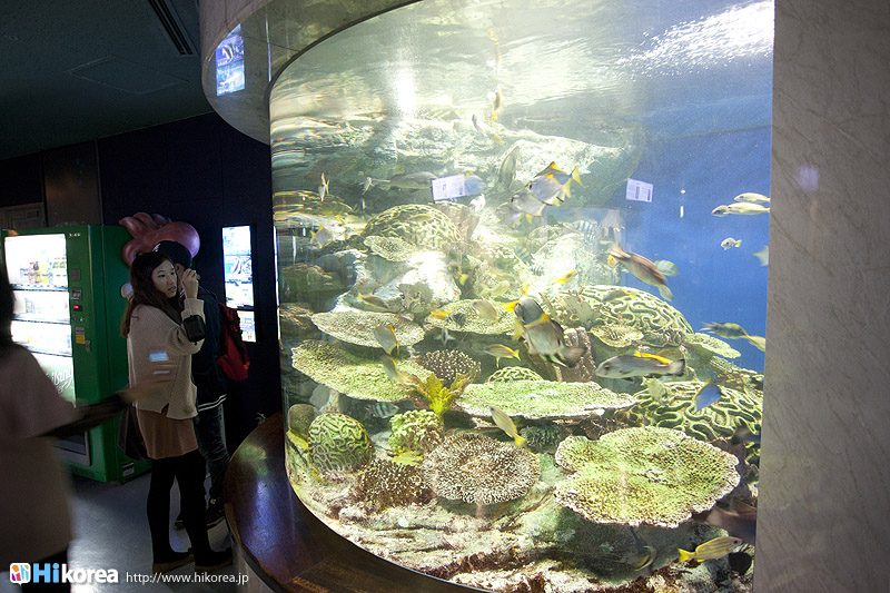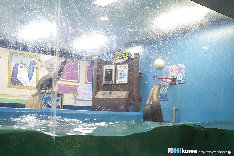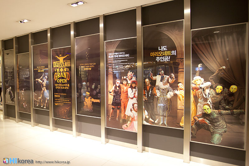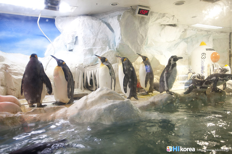チケットボックス 水族館、IMAXシアター、公演チケット、展望台など、全てのチケットは、地下1階のチケットボックスで販売しています。まずここでチケットを購入しないと、どの施設にも入れませんのでご注意を。ここには韓国語のフロアマップはもちろん、日本語のフロアマップもありますので、参考にもらっておくのが吉です。中は広いので、どこに何があるかチェックしておきましょう。尚、地下一階は外からも繋がっていますので、自分が入って来た入口が1階なのか地下1階なのかお間違えのないようにして下さいね。 60階 SKY ART 63ビルディングのメインとも言える60階にある展望台。天気の良い日は仁川の方までも見ることが出来るそうです。昼間は大都会ソウルが動く様子が鮮明に見え、夜は宝石の様な夜景が一面に見渡せます。このSKY ARTは以前、“63SKY DECK”という名前でしたが、2008年にリニューアルし、企画展示ができるアートスペースなどが設けられました。展示内容は時期によって入れ替わり、芸術的な展示からキャラクターのイベントまで、一般のお客さんや外国人観光客が親しめるような企画が組まれています。まさに老若男女が楽しめる展望台。ソウルの景色を眺めながら、芸術にも浸れる・・・。そんなとっておきの時間をSKY ARTでは体験できます。 63SKY ART CAFE 記念品売り場 THRILL DECK SKY ARTには展望台、企画展示の他に不思議な光を放つトンネルや、なんでも願いやメッセージを残す壁、足元が透明な床など、数々のお楽しみがあります。 地下1階 63SEA WARLD お子さん達に特に人気の63SEA WORLD。オフィス街にある高層ビルの中に水族館!?と驚かされますが、これがなんと超大規模。約400種類、20,000匹の魚や鳥などの海洋生物が揃っています。超巨大セイウチにテコテコ歩いてはボーっと突っ立っているペンギン、色とりどりの熱帯魚に、オットセイのショーなど、見所盛り沢山!それだけじゃなく、カワウソにエサをあげたり、ドクターフィッシュがいる水槽に指を入れて角質を食べてもらうなど、身をもって出来る体験もあります。ショーはオットセイの他に、セイウチのショーや、ダイバーによるペンギンや魚に餌付けするショーなどもありますよ!ベビーカーも貸し出してますので、まだ歩けないお子さんも飽きずに楽しめる水族館です。 セイウチのショー カワウソにエサを(*^-^*) ドクターフィッシュ ダイバーによる餌付け 地下3階 WAX MUSEUM ロウ人形館と言えば、東京タワーを思い出しますが(笑)、ここ『63ビルディング』にも大きなロウ人形館があります。地下3階に下りていきますと約500坪の巨大スペースに、約70点以上のロウ人形が展示されています。ロウ人形には様々なテーマが設定され、【最後の晩餐】を再現した作品や、【スポーツスター】、【恐怖体験館】などバラエティに富んでおり、見る人を魅了します。ここに飾られている作品のほとんどを、世界的にも有名なロウ人形作家である松崎悟さんが手がけたそうで、日本人には勿論ですが、世界各国から賞賛され親しまれている作品が沢山あります。作品の中には日本人の有名人を再現した作品もあり、親近感を存分に味わえる場所となっています。 一万ウォン札のに描かれている世宗大王 「Yes! We can」オバマ大統領 我らがイチロー イ・スンヨプさん 寅さん、今度はどちらへ? その他のギフトショップや5D体験 水族館出口にある記念品販売 水族館内記念品販売 5D体験 ティディベア展示場 ティディベア販売 ロウ人形館から繋がっているティディベアの展示やティディベアショップ、5D画面で恐怖体験、水族館の記念品など、ほかにも楽しめる場所盛り沢山です。特に女性やお子さんなどには、嬉しい場所です。まさに家族連れ、カップルのデートにピッタリの『63ビルディング』(*^-^*) 地下1階 フードコート カフェ、各レストラン、各ショップ 花屋さん ファミリーマート 63BUFFET PAVILION 日本食“TERIYAKI” 『63ビルディング』の地下1階には本格和・洋・中などの各レストランや花屋、本屋、パン屋、コンビニなどが入っています。その中でも“63BUFFET PAVILION”は超豪華ビュッフェレストランで、地元の韓国人にも特別な日の食事などに多く利用されているそう。味もGOODで、雰囲気やインテリアの上品さは、私達を一気にセレブにしてくれます。その他ブランドショップなども揃っているので、一日中遊べます。 公演ホール 63 ART HALL『63ビルディング』では、世界各国の人が楽しめるノンバーバールパフォーマンス公演【マリオネット】が行われています。大人から子供まで大好評の上、ノンバーバルなので、言葉の壁も心配要りません。そして、このホールは昼間は映画館“63IMAX 3D”として使われていて、座席は約460席以上、7階分の高さを誇る超巨大スクリーンを備えています。新世界を味わうような気持ちで映画が楽しめる、スペシャルな公演ホールです。 何につけても大規模!韓国ソウルで、愉快な体験を!ソウルの人からとっても親しまれている