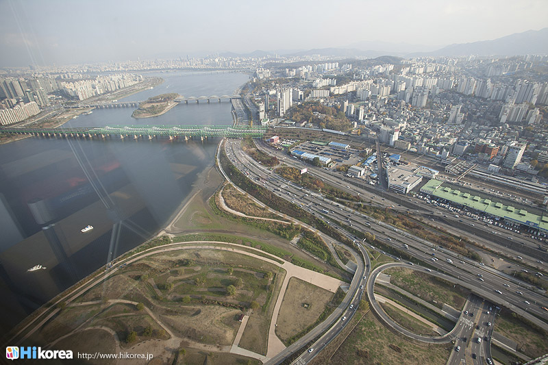 みなさん、アンニョンハセヨ。いかがお過ごしですか( *・ω・)ノ今回はソウル旅行において、絶対欠かすことの出来ない場所と言っても過言では無いスポット、『63ビルディング』をご紹介していきます。『63ビルディング』は外国人観光客には勿論のこと、地元のソウルの人たちにも絶大な人気があるスポットで、カップルや家族、小さいお子さんを連れなど、様々な層が楽しめる複合文化空間です。最上階の展望台を始め、大規模水族館、蝋人形館、フードコートに和洋折衷の各レストランなど、一日中ここで過ごせるほどの施設がギッシリ詰まっています。時期によっては企画展示なども行われ、芸術にも浸れるこの場所。ソウルの人も大好きなこの『63ビルディング』の魅力をタップリお見せしていきましょう。国会議事堂の所在地として有名“汝矣島”に位置ソウルの真ん中を横切るように流れる“漢江”に浮かぶ汝矣島。そこは、国会議事堂を始め、大手企業やテレビ局、銀行の本社など、有名な会社が沢山集まり、ビジネスタウンとも言える場所です。そんな場所に位置する『63ビルディング』は、漢江からすぐ傍にあります。最寄駅は、地下鉄5号線汝矣ナル駅。4番出口を出て、徒歩約15分と若干歩きますが、漢江沿いを歩きながら散歩感覚で移動できる街並みです。“ゴールデンタワー”とも呼ばれる『63ビルディング』は、その名の通り金色に輝いているので、すぐ分かると思います。 『63ビルディング』のフロア紹介