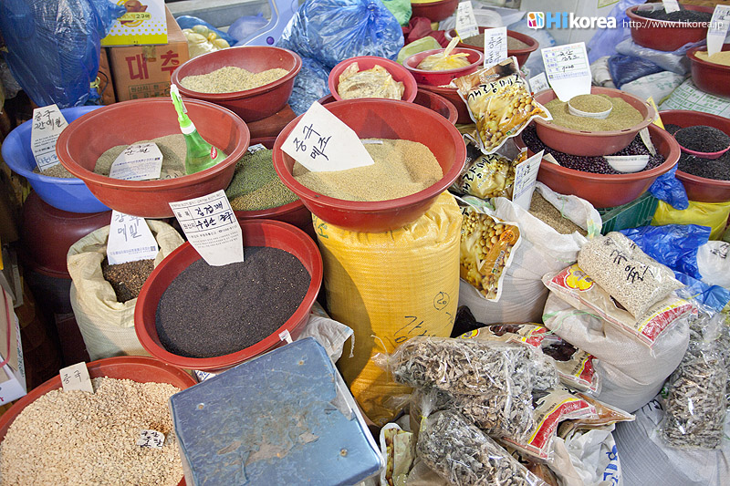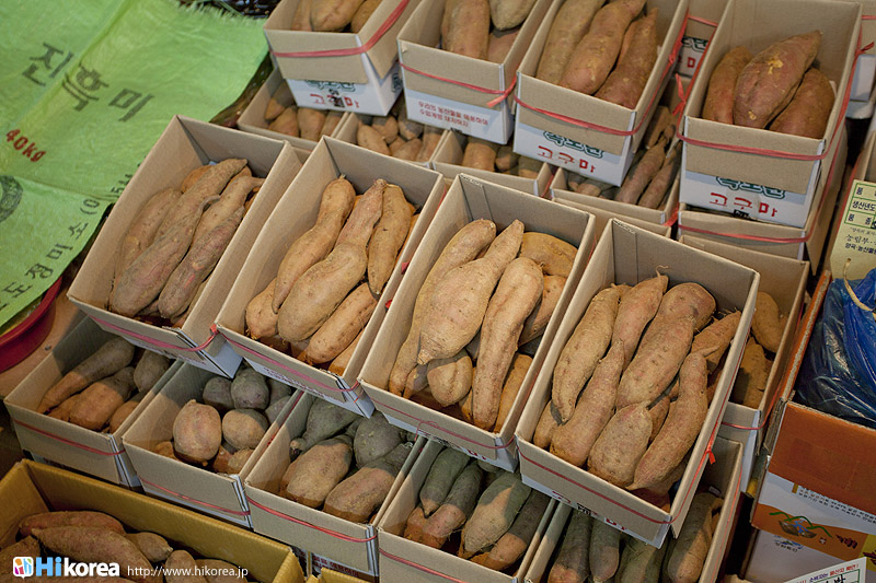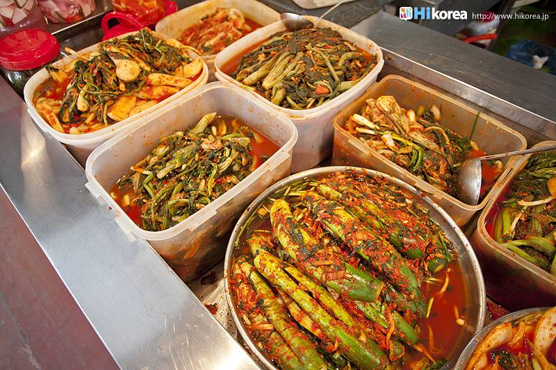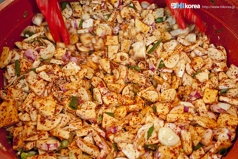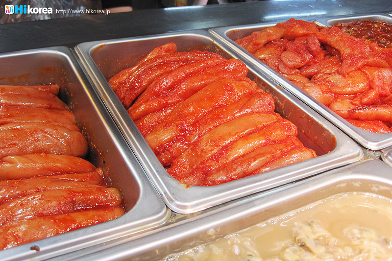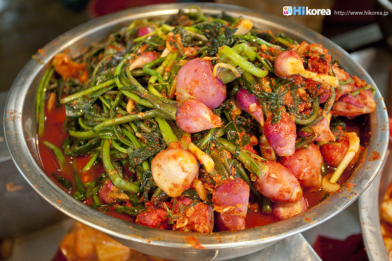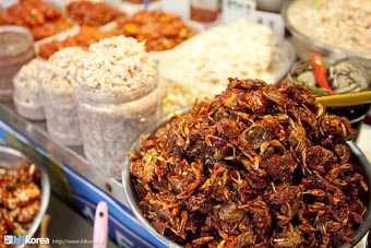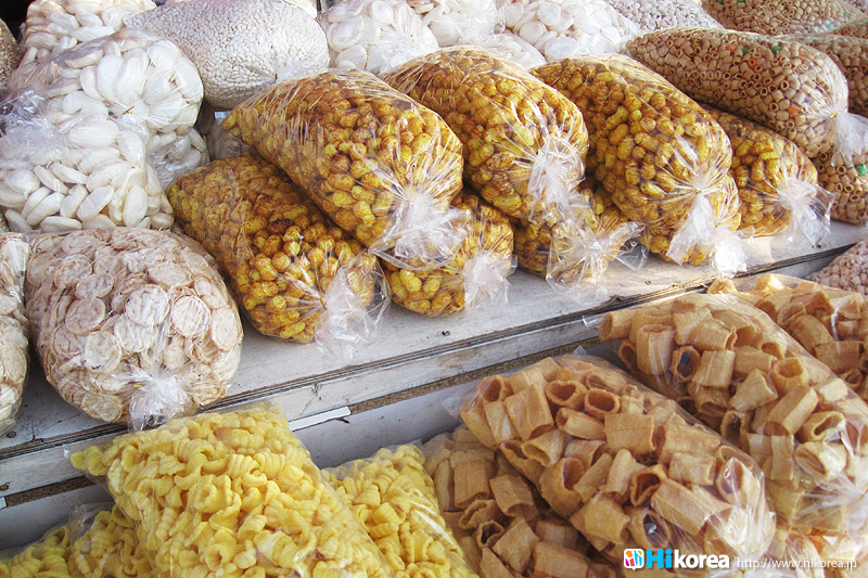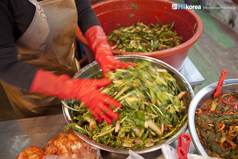 江華(カンファ)バスターミナルのすぐ隣りにあるのが風物市場(プンムルシジャン)です。風物市場は江華島民俗名所化事業の一環として、2007年に新築された新しい市場です。市場の1階には野菜や果物、キムチ、塩辛やお刺身センターなどかあり、“カッカジュセヨ”と値段交渉するのも楽しいし、2階には数多くの食堂があり、新鮮な造りを楽しむことができます。また、サッパ(ままかり)が有名なので、ぜひ一度召し上がってみてください。そして忘れてはいけないのが、2階にある花ござ(花紋席)を使った商品を売るお店や、乾燥よもぎを中心にした韓方薬のお店です。日本にはない韓国独特のカラフルなござも綺麗です。風物市場は、目もお腹も満たしてくれる市場です。 江華バスターミナルのすぐそば風物市場はソウルから北東に50kmのところに位置している江華島にあります。新村から3000番のバスに乗って1時間、江華バスターミナルに到着すると、まさにその横が風物市場です。江華島を訪れたら歴史探訪をするのも楽しみのひとつですが、その土地でしか食べる事ができないものを食べたり、その土地でしか買えない名産品を買ったりするのも、楽しみのひとつではないでしょうか。そんな楽しみを、かなえてくれるのが風物市場です。 ![]() 風物市場 1階売場赤カブにのキムチを漬けている様子 サッパの塩辛 あみえびの塩辛 やはり、長年培ってきた勘と言うものでしょうか。また、もうひとつの江華島名物のサッパ(ままかり)とあみえびの塩辛がドラム缶で漬けられてるのには、ちょっと驚いてしまいました。 サッパとあみえびの塩辛はキムチを漬ける時の調味料になるんだそうです。また、奥の一角には鮮魚店が軒を並べ、新鮮な魚貝類が売られています。→ 赤カブのキムチ キムチ 赤カブのお漬物 塩辛や明太子など 果物屋 干物屋 八百屋 韓方薬 塩辛とケジャン 風物市場 2階売場・食堂日本から嫁いだ果物屋の女将さん亀石富美子さん江華島の風物市場いかがでしたか?風物市場には、日本人にとっては嬉しい事に、市場の入口にある果物屋さんシンヨンチョンクァ(신용청과)には日本人の亀石富美子さんという女将さんがいて風物市場に日本のお客さんが来たときは、市場の中を案内してくれるそうです。亀石富美子さんは16年前に日本の岡山から江華島に嫁いで来たそうです。風物市場に行ったときは一度声をかけてみてください。とても気さくに話してくれますし、時間があるときは一緒に案内してくれるそうですよ。そして、なんと言っても地方の市場は楽しいです!確かにソウルの中にある市場も楽しいですが、地方には地方の市場の特色や名産品があって、とても楽しいです。ここ風物市場は江華島の魅力がいっぱい詰まった市場です。また、毎月2,日、7日には風物市場で、とうがらし市も開かれています。江華島にいく時は一度訪ねてみてはいかがでしょう。 |