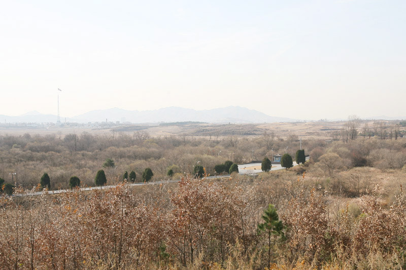 第三警備所(野外展望台)観光客が自由の家、軍事停戦委員会の本会談場を見学した後、共同警備区域の南側にある展望台の第三警備所に至る。ここに至ると板門店の境内施設を含めて帰らざる橋、北朝鮮の開城市、松岳山、休戦協定の調印場所、北朝鮮の警備所、宣伝村のギジョンドンなど板門店の周りの全般的な風景を眺めることが出来る。