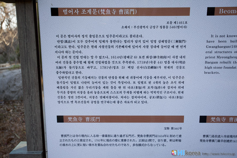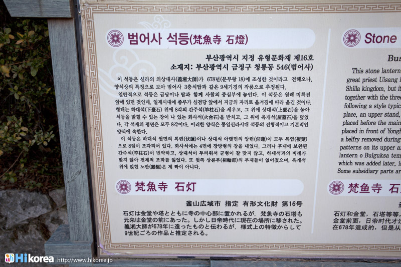 義湘大師によって国民の思想を強化する為に建てたと言われている『梵魚寺』。この“義湘(625年~702年)”という人は新羅の僧で新羅における華厳宗の祖、海東華厳宗の祖とも言われている人です。唐に留学後新羅へ帰国し、梵魚寺のほかに海印寺・王泉寺・華厳寺の華厳十刹で教学を広めたとされています。