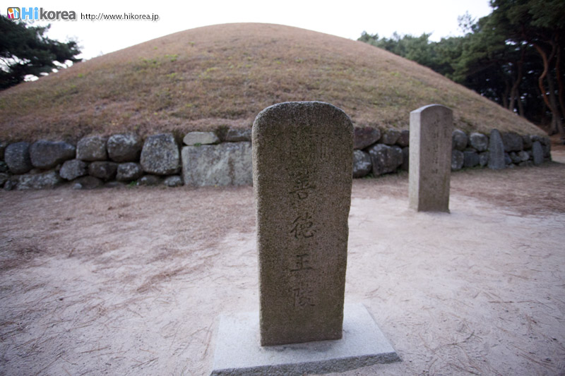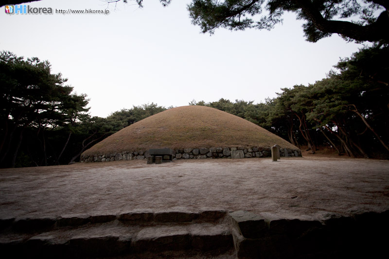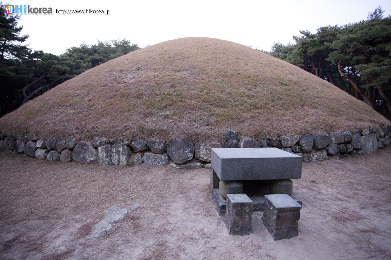 1969年8月27日史跡第182号に指定され、狼山保護区域に含まれて居ます。四天王寺の上、狼山にあり現在の状態は封土下にまわりの石を積んだ円形の土墳です。まわりの石は雑石を斜めに二段積み、その他にポツリポツリとまわりの石の高さと同じほどの台石をかけて置いたそうです。これに押されて武烈王陵の封土下に露出した自然石の一部分は結局この様な形式の石が封土に置かれたと推定されます。その他には表飾儀物が無くただ全面に床石がありますが、これは後世に設置されたものです。