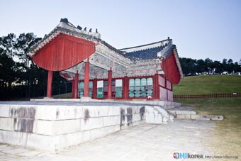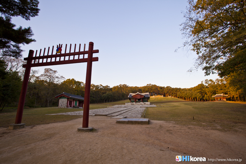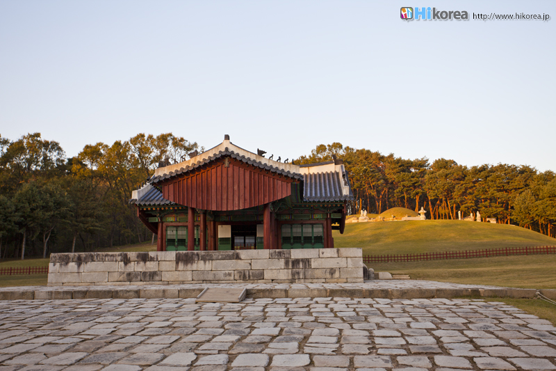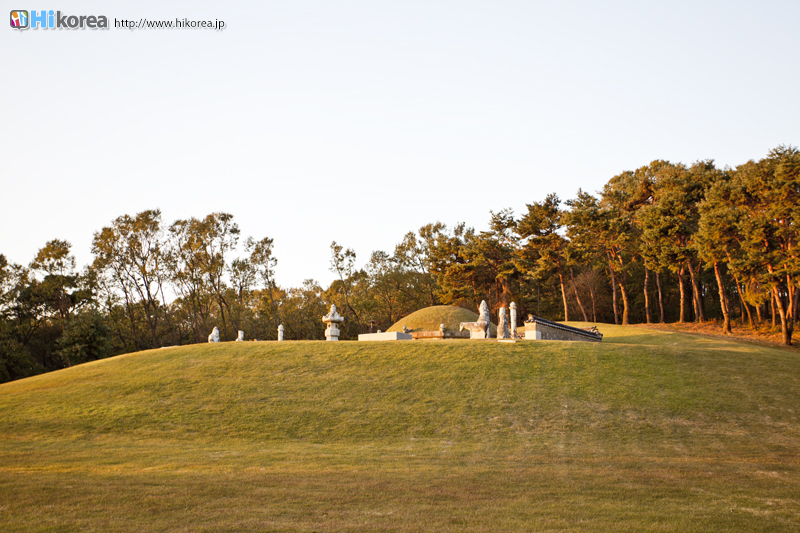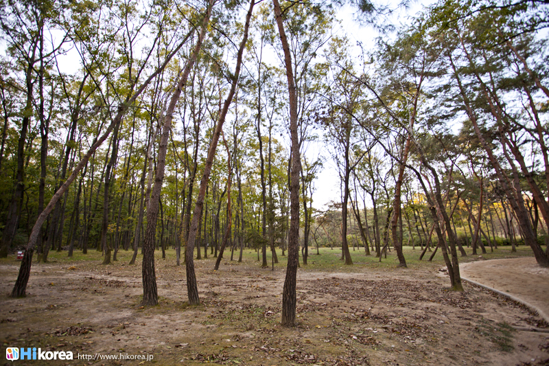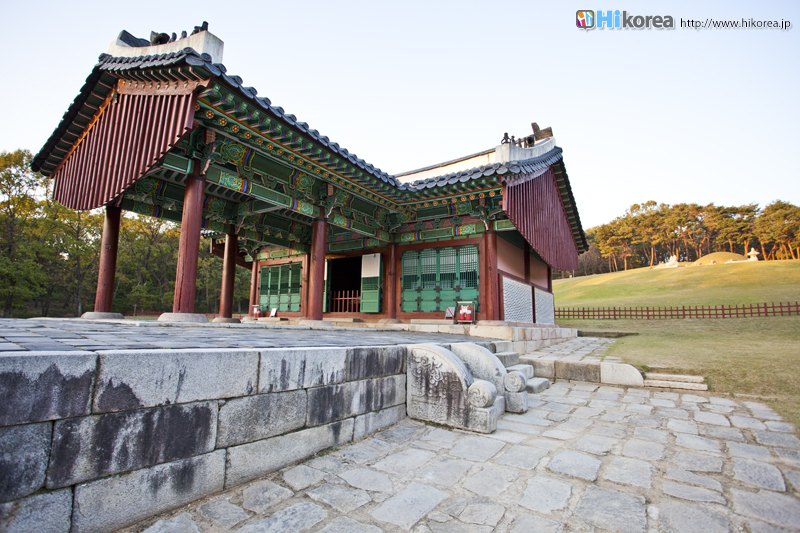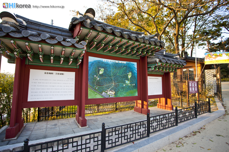 水原華城から少し離れた場所にある隆健陵(ユンゴンルン)は王の墓で水原華城を築城した朝鮮王朝22代正祖大王と孝懿王后のお墓「健陵(ゴンルン)」、そして彼の親である思悼世子と惠慶宮洪氏のお墓こと「隆陵(ユンルン)」があります。隆陵と健陵は合葬陵のことで、『隆健陵(ユンゴンルン)』と言います。隆健陵は史跡第206号として指定された文化財でもあり、2009年6月にユネスコ世界文化遺産にも登録されました。米櫃に閉じ込められ死を迎えた思悼王世子のお墓に親孝行だった正祖が亡くなった後に父の隣の墓に埋められたと伝えられています。「隆陵(ユンルン)」隆陵の入口 入口から入って進むと道が二つに分かれています。右に進むと「隆陵(ユンルン)」、左に進むと「健陵(ゴンルン)」 です。 正祖大王の父である思悼世子(サドセザ)の墓はここの山勢が険しく風水的観点から良くないと方向が変わっており、霊魂が出入りする紅門、祭祠するための丁字閣、お墓である王稜の順に並んでいます 。 丁字閣 今でも祭礼が行われている丁字閣です。朝鮮時代の建築物の細かさなどが伝わってきます。また,建物は上から見るとT字型になっています。 丁字閣前には祭礼時に使われる米櫃(米を貯蔵する木の箱)が展示されています。英祖に憎みを買われた思悼世子は無実の罪に着せられこの米櫃の中に閉じ込められ亡くなりました。 もともと思悼世子の墓は京機道楊州(ソウル東大門区)にありましたが、正祖の即位後風水的に優れているため水原に移されました。 丁字閣前 丁字閣の内部 王稜 「健陵(ゴンルン)」健陵の入口 左写真は思悼世子の息子、正祖(イサン)大王と孝懿王后が眠る墓の健陵。 父思悼世子の悲劇の死からいつも父を偲んでいたそうです。そんな思いを知る人々は正祖大王が亡くなった後、いつでも思悼世子に会えるようにと隣に健陵を設けました。 丁字閣 健陵は丁字閣とは違い紅門、丁字閣、王稜が一直線に並んでいます。こちらには丁字閣の前には米櫃はありません。 水原華城を築いた正祖大王であり、朝鮮時代後期の文化を作り上げました。水原華城から隆健陵までは車で30分~40分ほどの距離にあります。 丁字閣の内部 王稜前 王陵の前は魂霊が安らかに眠れるようになっている 見学をしながら自然の中で休憩も |