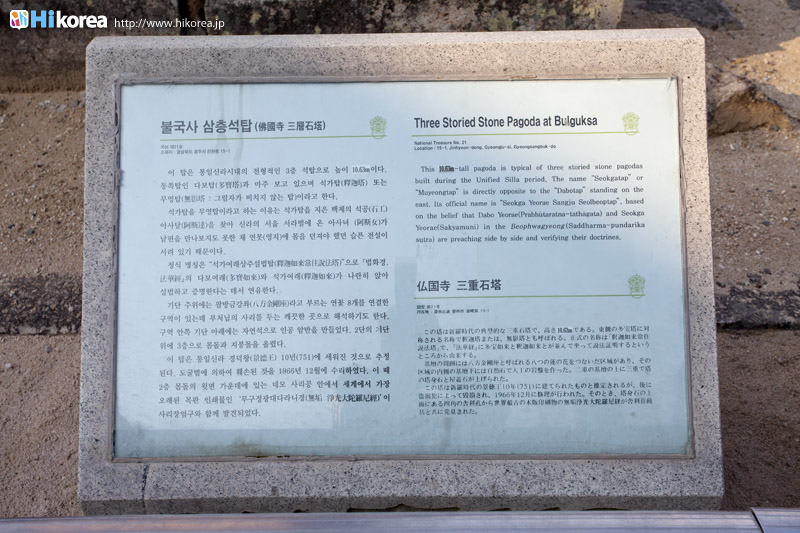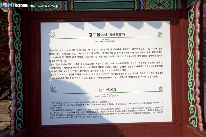 | アクセス方法案内 | 慶州駅からバスで約40分(10番または11番バスに乗車し、終点の仏国寺駐車場で下車) |