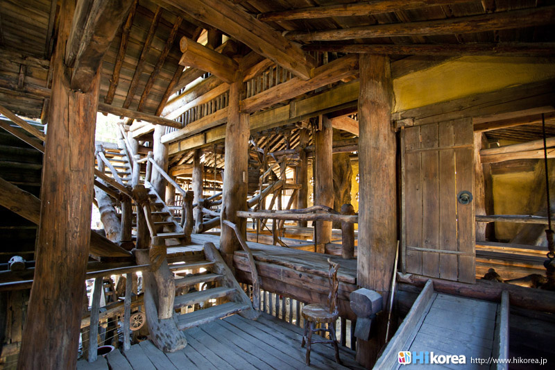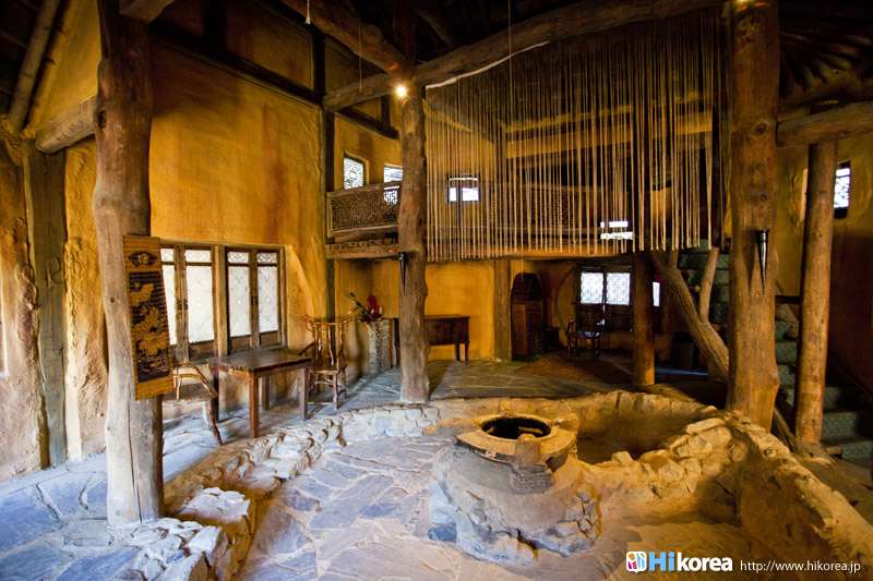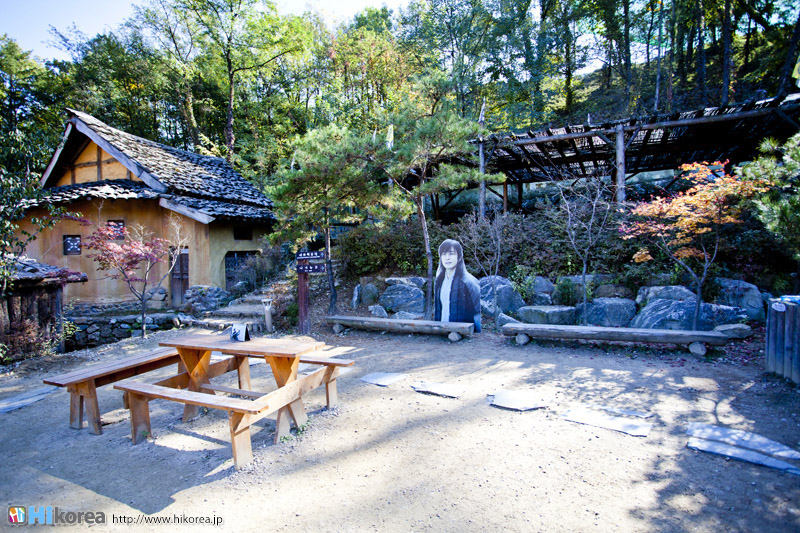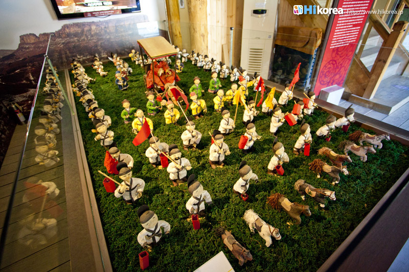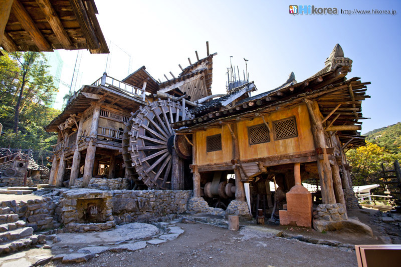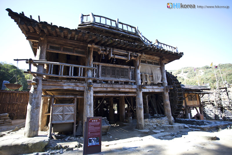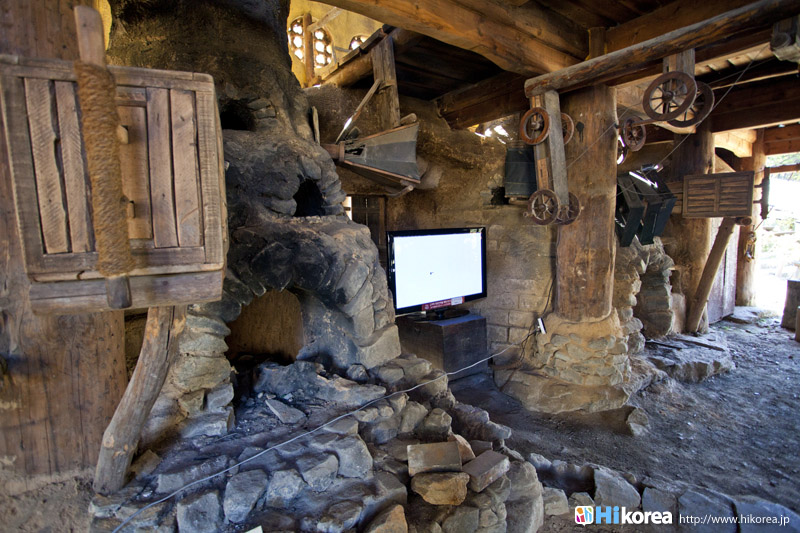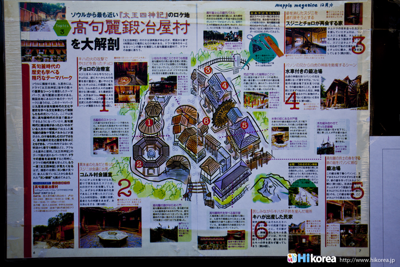 初めて来た方でもわかりやすいように日本語でマップと説明が書かれています。撮影されたドラマのシーンがしっかり説明してあるのも嬉しいですよね!!こちらのマップは白黒ですが、コピーももらえますよ。それでは入口から入って行きましょう~~!! 入口 コムル村会議室 水車付きの鍛治場 水車小屋 キハが出産した民家 スジニとチェロが再会する家 鍛治場 防御柵 歴史を学べる展示品もあります 展示パネルで記念撮影も記念品はお土産コーナーで購入できますよ |